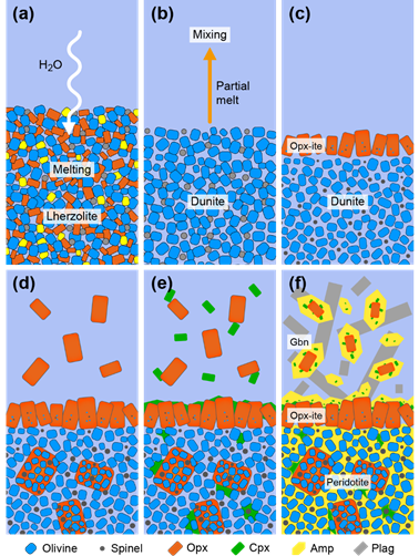 Wang, C., Liang, Y., Dygert, N, Xu, W. (2016). Formation of orthopyroxenite by reaction between peridotite and hydrous basaltic melt: an experimental study. Contributions to Mineralogy and Petrology, 171, 77.