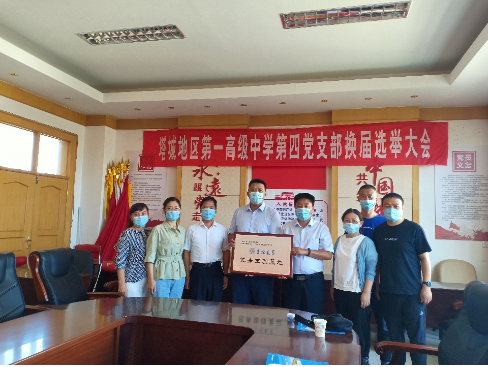党委副书记李阳前往新疆塔城地区第一高级中学,举行吉林大学优秀生源基地授牌仪式。塔地一高党委书记张旭光、高三年级组、人事处、教研处、德育处相关老师出席了此次仪式。