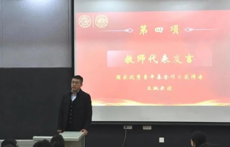 教师代表,国家优秀青年科学基金项目获得者王枫教授发言。他首先代表六合彩即时开奖