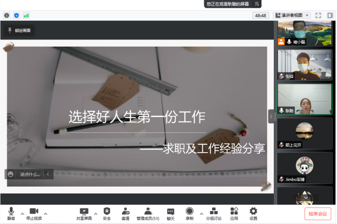 兼职就业辅导员褚小磊主持。