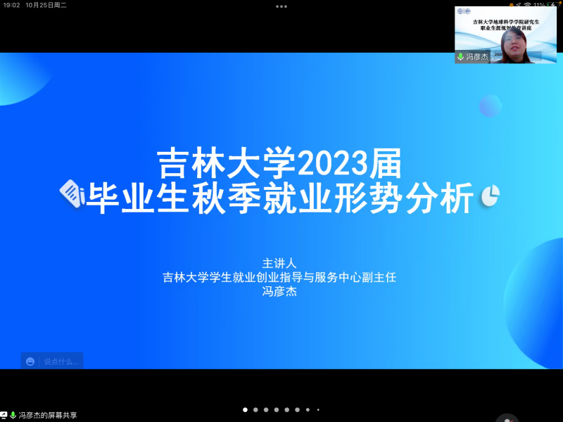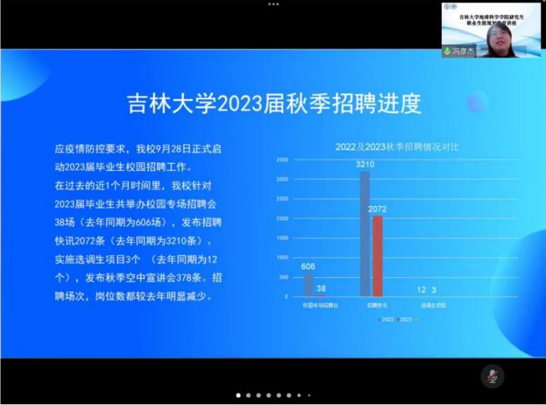 学生就业创业指导与服务中心副主任冯彦杰老师,以“吉林大学2023届毕业生秋季就业形式分析”为题,为六合彩即时开奖