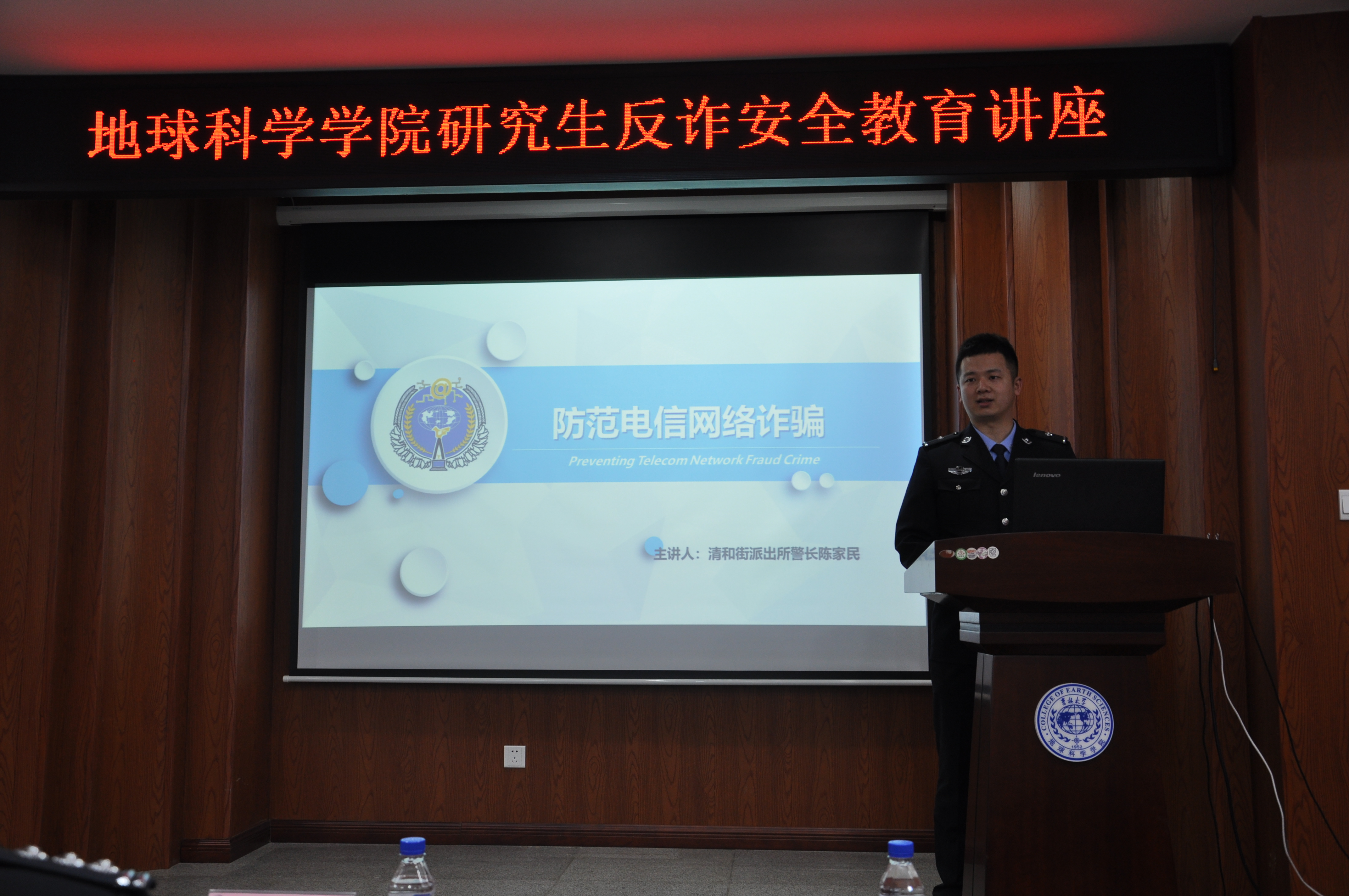 邀请清河街派出所民警陈家民在鸽子楼一楼报告厅为同学们带来了以“防范电信网络诈骗”为主题的安全教育讲座。清河街派出所民警陈东明、朝阳保卫办治安科科长曾光、校园110班长宋伟出席本次活动。活动由六合彩即时开奖