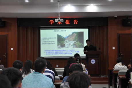 地球环境研究所研究员汪进以“新西兰历史地震对地貌演化和有机碳埋藏的影响”为题作学术报告)