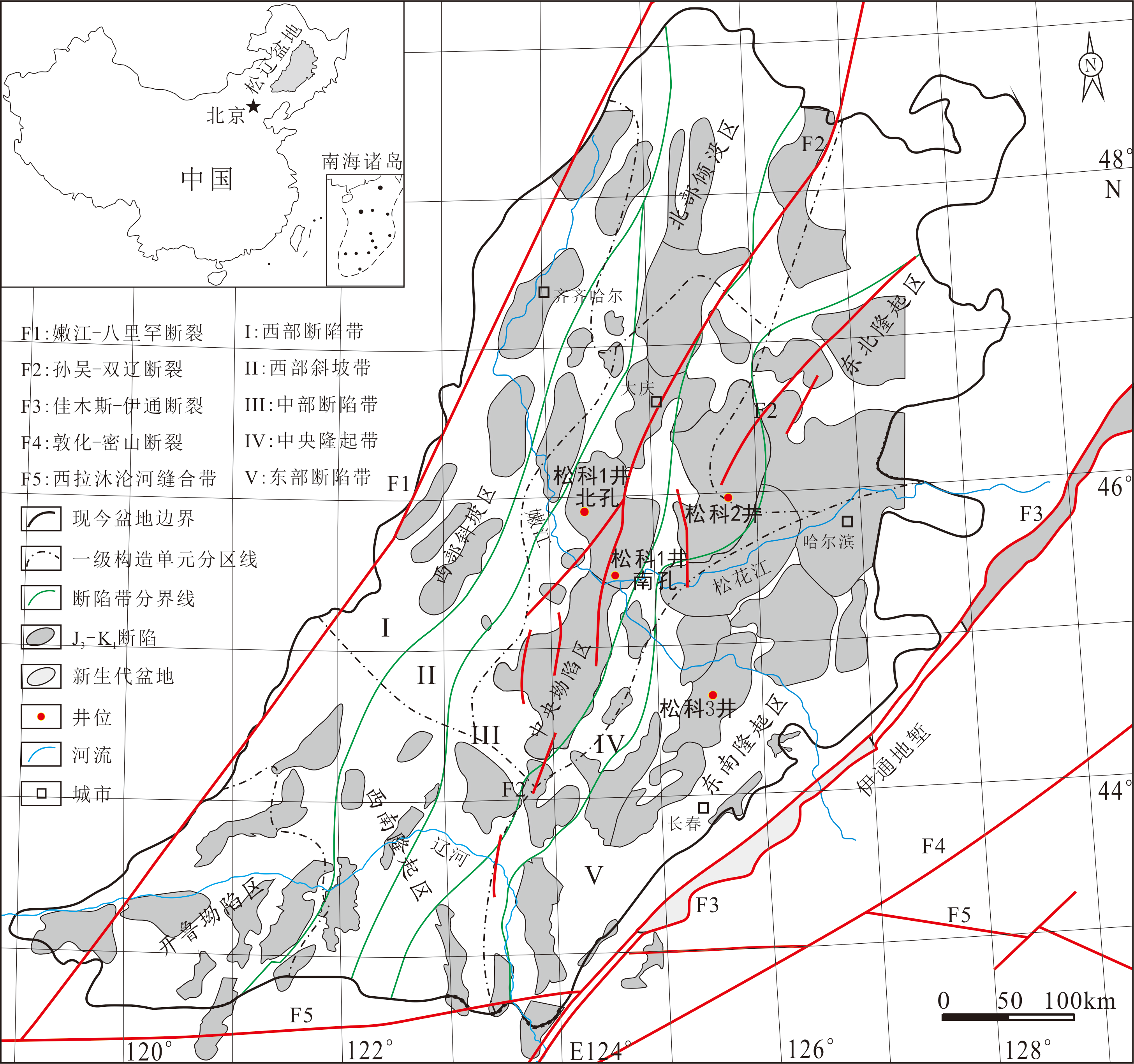 松辽盆地白垩纪大陆科学钻探井位分布图