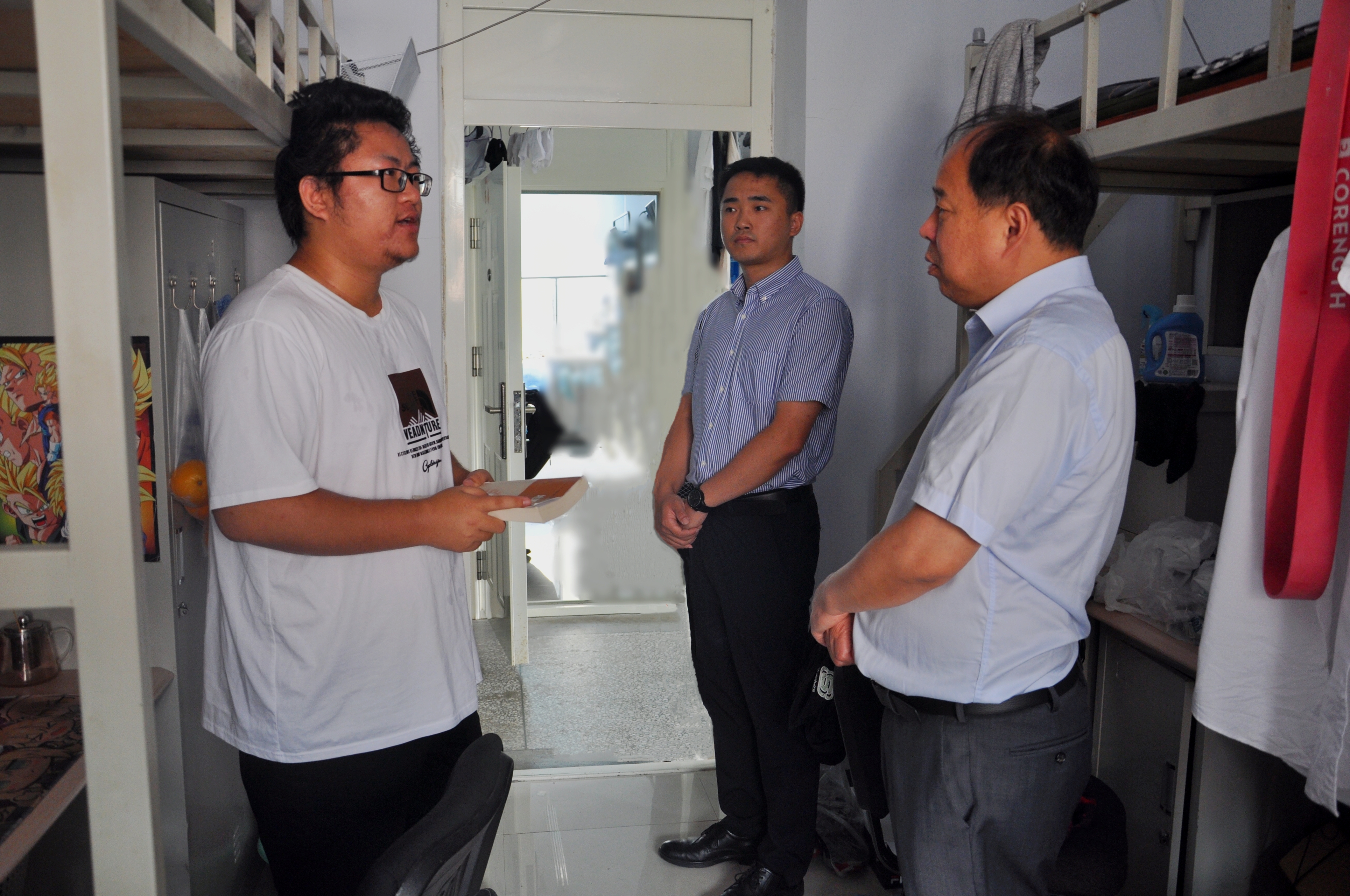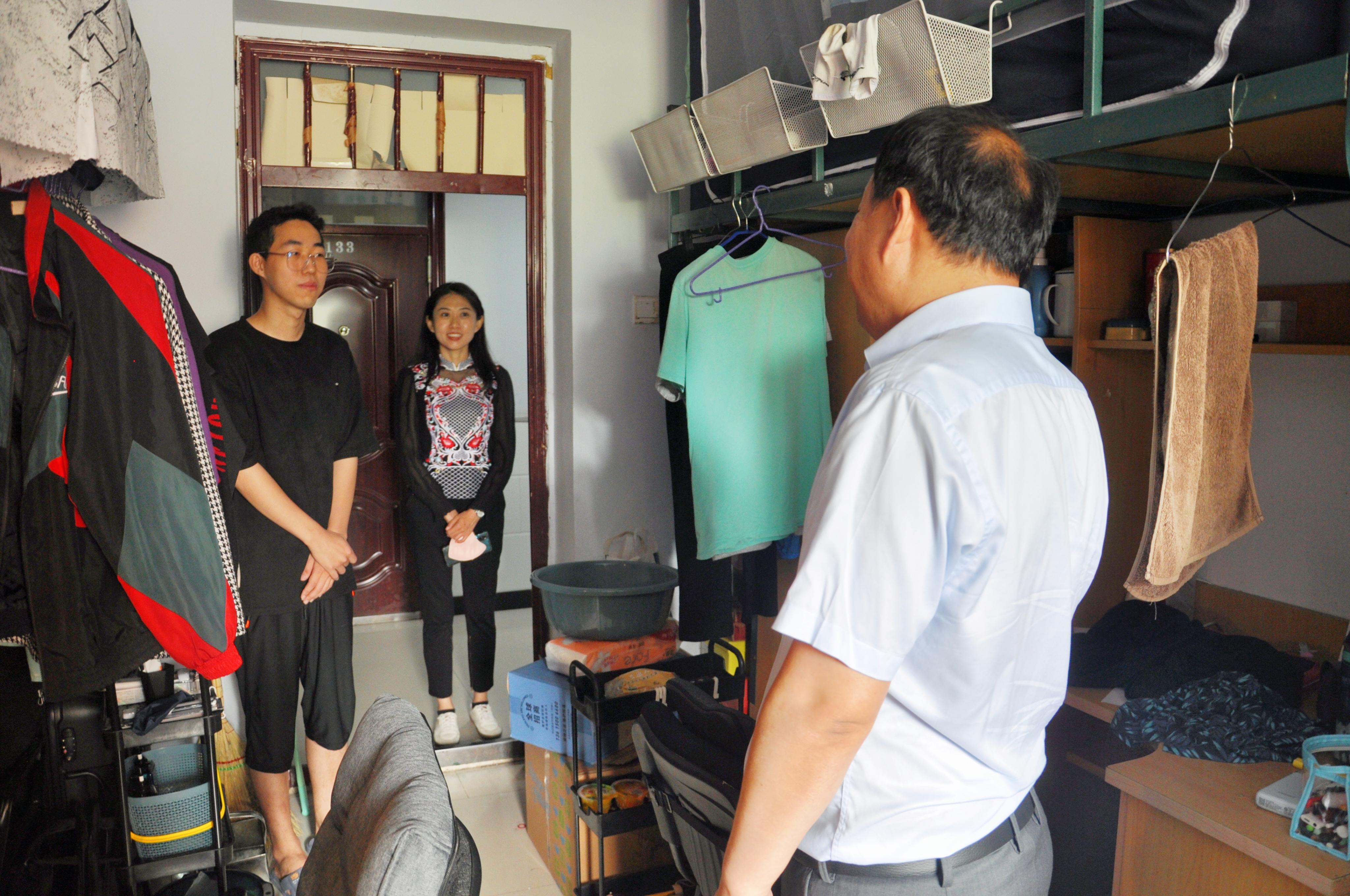 党委书记杨洲、党委副书记马旭、研究生辅导员姜鹏一起深入研究生新生寝室走访慰问。
