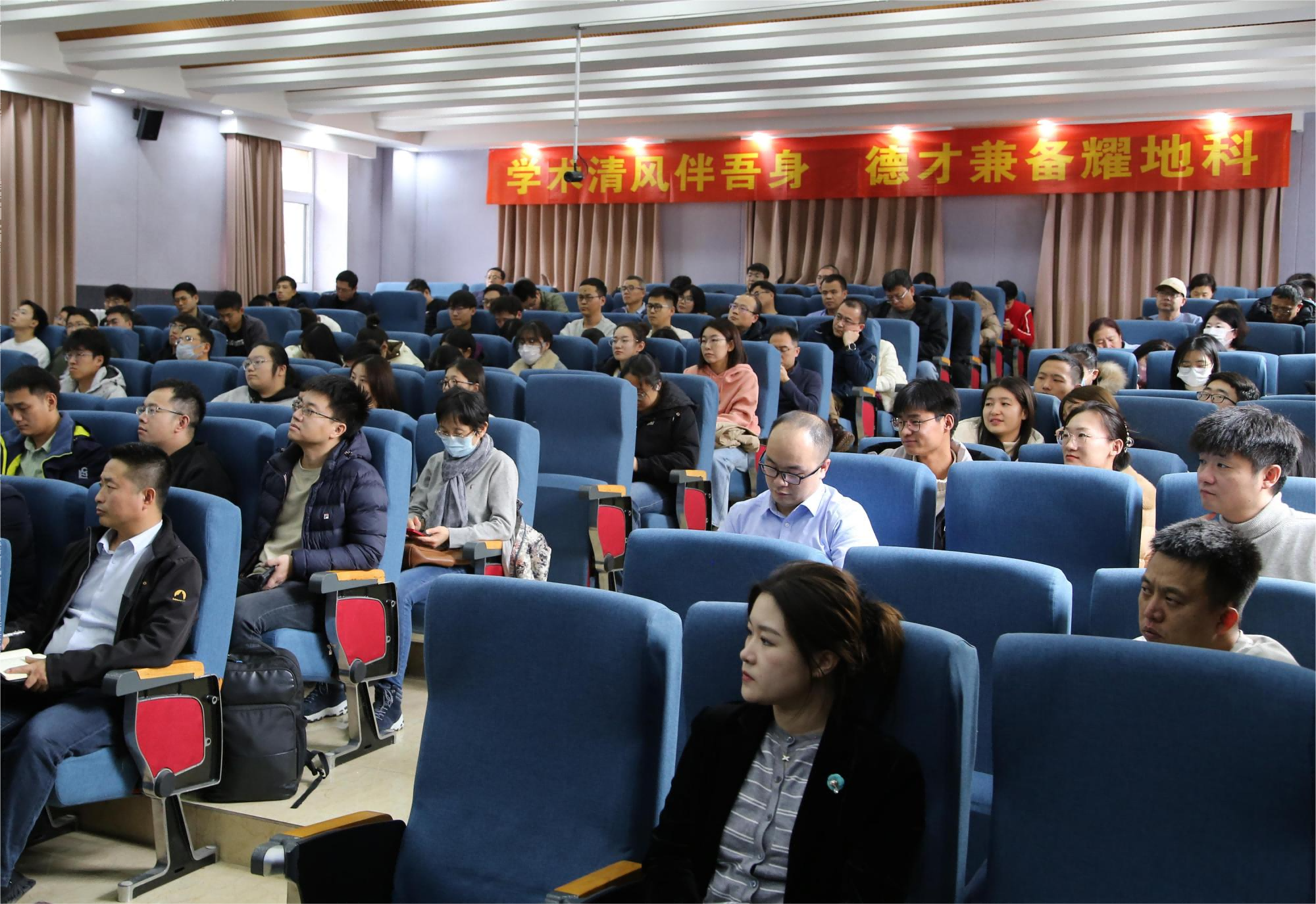 领导班子成员、教职工及研究生共一百二十余人参加报告会。