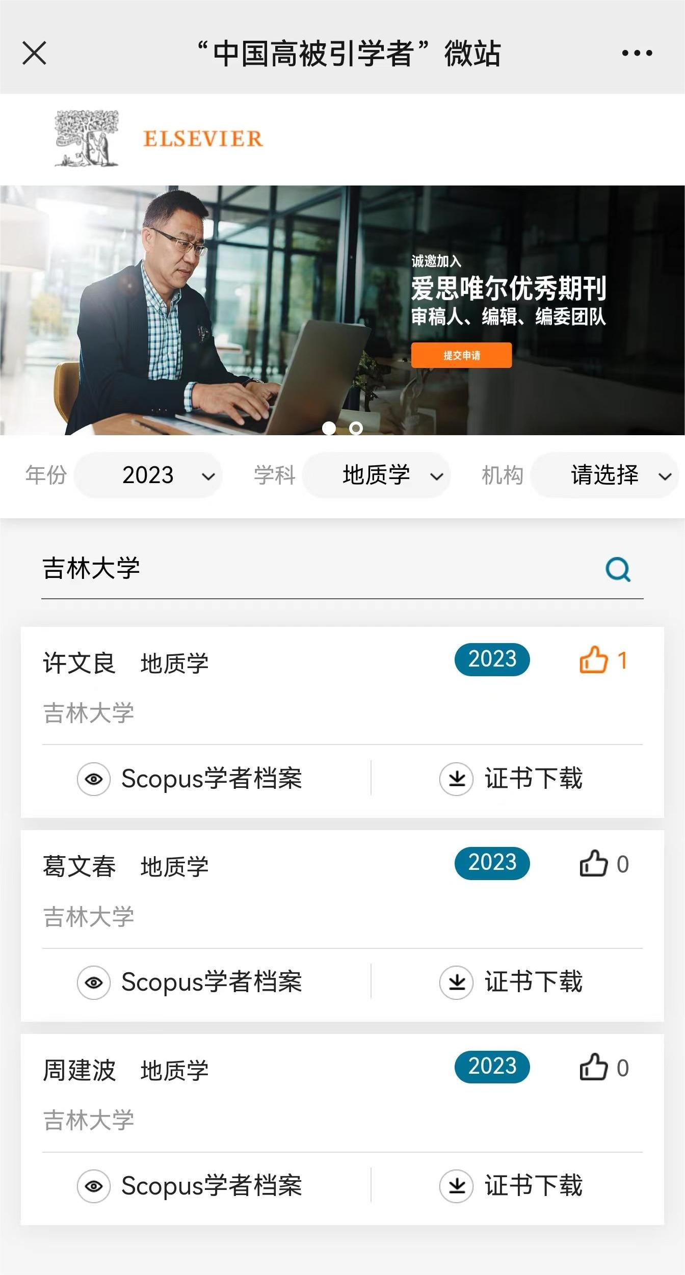 3月27日,爱思唯尔(Elsevier) 发布2023“中国高被引学者” (Highly Cited Chinese Researchers)榜单,地球科学六合彩即时开奖