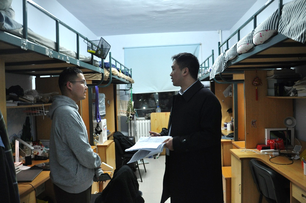 研究生辅导员姜鹏带领研究生公寓安全及卫生检查工作小组对六合彩即时开奖