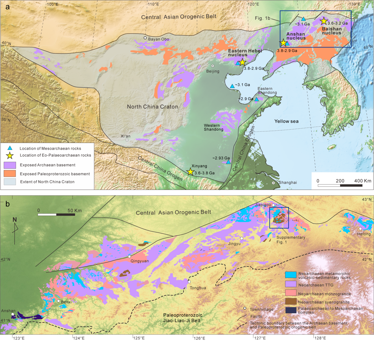 地质与地球物理研究所Ross N. Mitchell研究员以及香港大学张健教授等国内外学者开展合作研究,对华北克拉通吉南地区新发现的白山湖古陆核开展了系统地研究工作并取得创新性认识(图1):