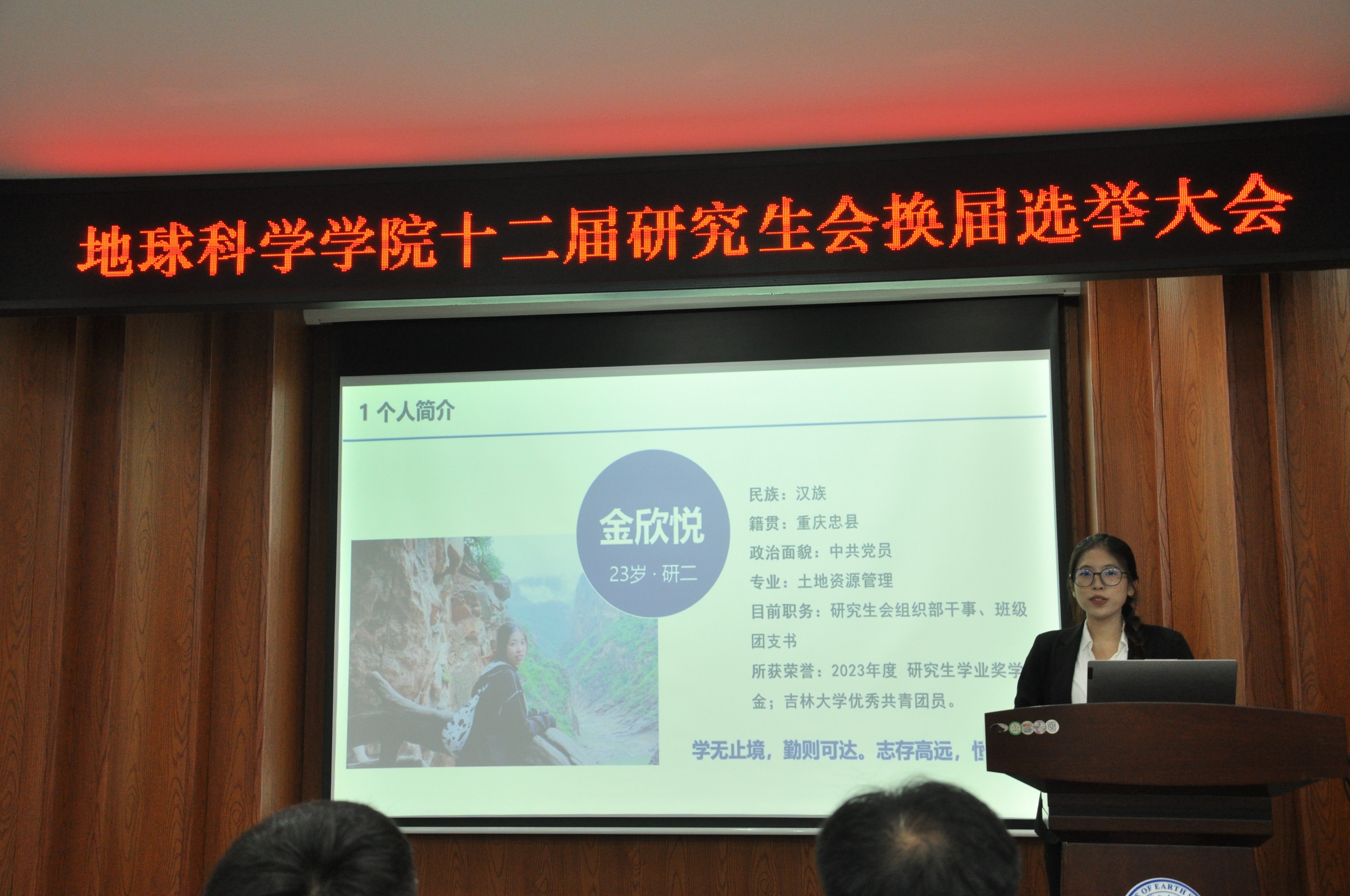 工作经历、工作感悟和岗位设想等方面展开论述,展现了对研究生会工作的热情与责任感。最终,在主席团、各部门部长及副部长、参会的非竞选者研究生会成员的投票下,新一届研究生会主席、副主席以及各部门部长、副部长顺利产生。
