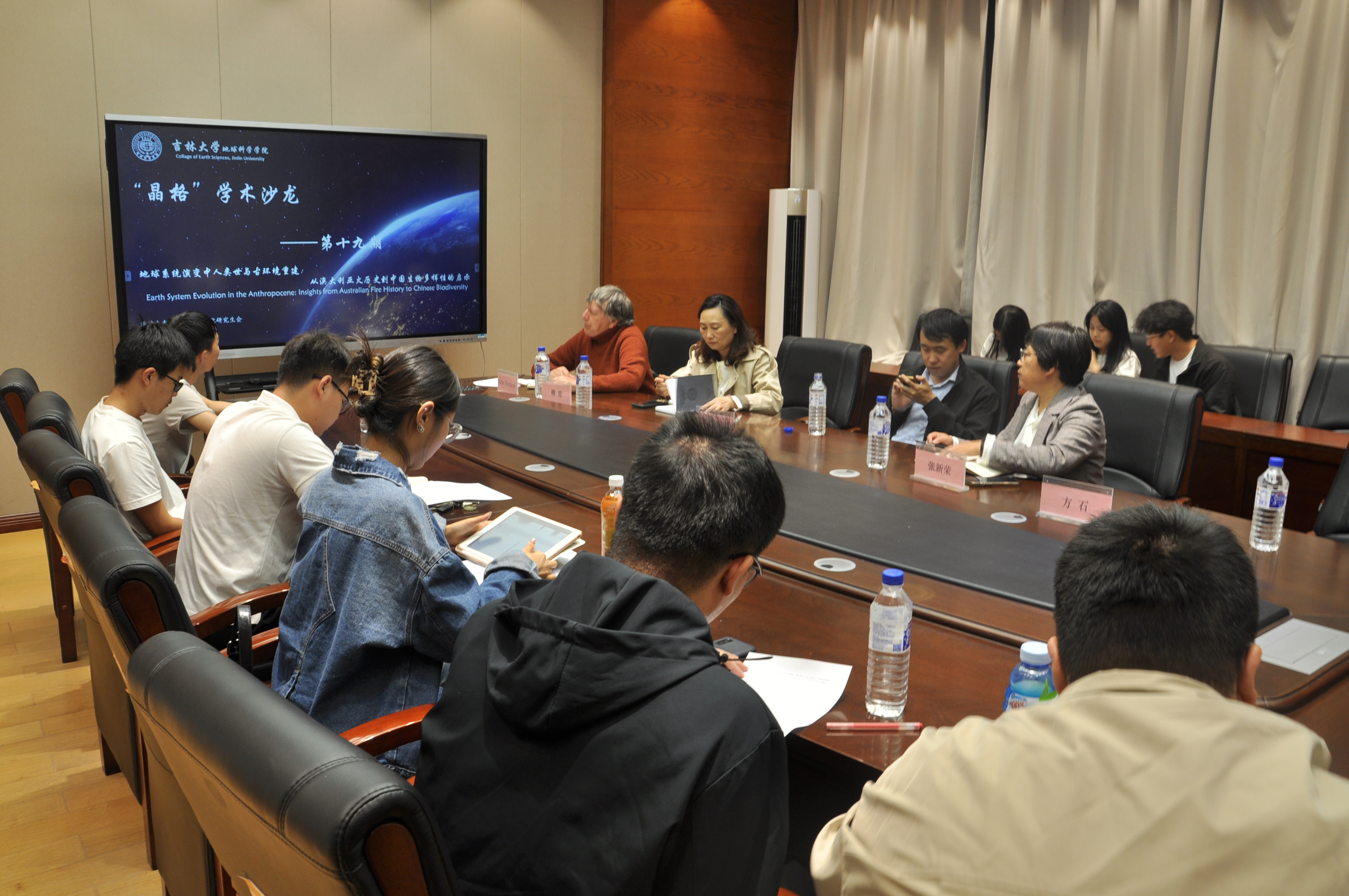 在朝阳校区鸽子楼109-1研讨室举办了以“地球系统演变中人类世与古环境重建:从澳大利亚火历史到中国生物多样性的启示”为主题的第十九期研究生“晶格”学术沙龙活动。本期学术沙龙特邀澳大利亚科学研究院国家委员、国际地圈生物圈计划委员、澳大利亚国立大学植被演化历史专业理学博士约翰·道森教授,吉林大学柳蓉老师、于祥江老师和张新荣老师为点评嘉宾。会议由张新荣老师召集。分享的同学有博士研究生刘高飞、刘春龙、霍元勃、刘嘉康,硕士研究生胡钦芝、夏超、郁杭玉、毕研威、龚艳、陆祉薇、艾常荔、张浩、张海洋。活动由2025级地质学专业硕士研究生张梓萱主持。