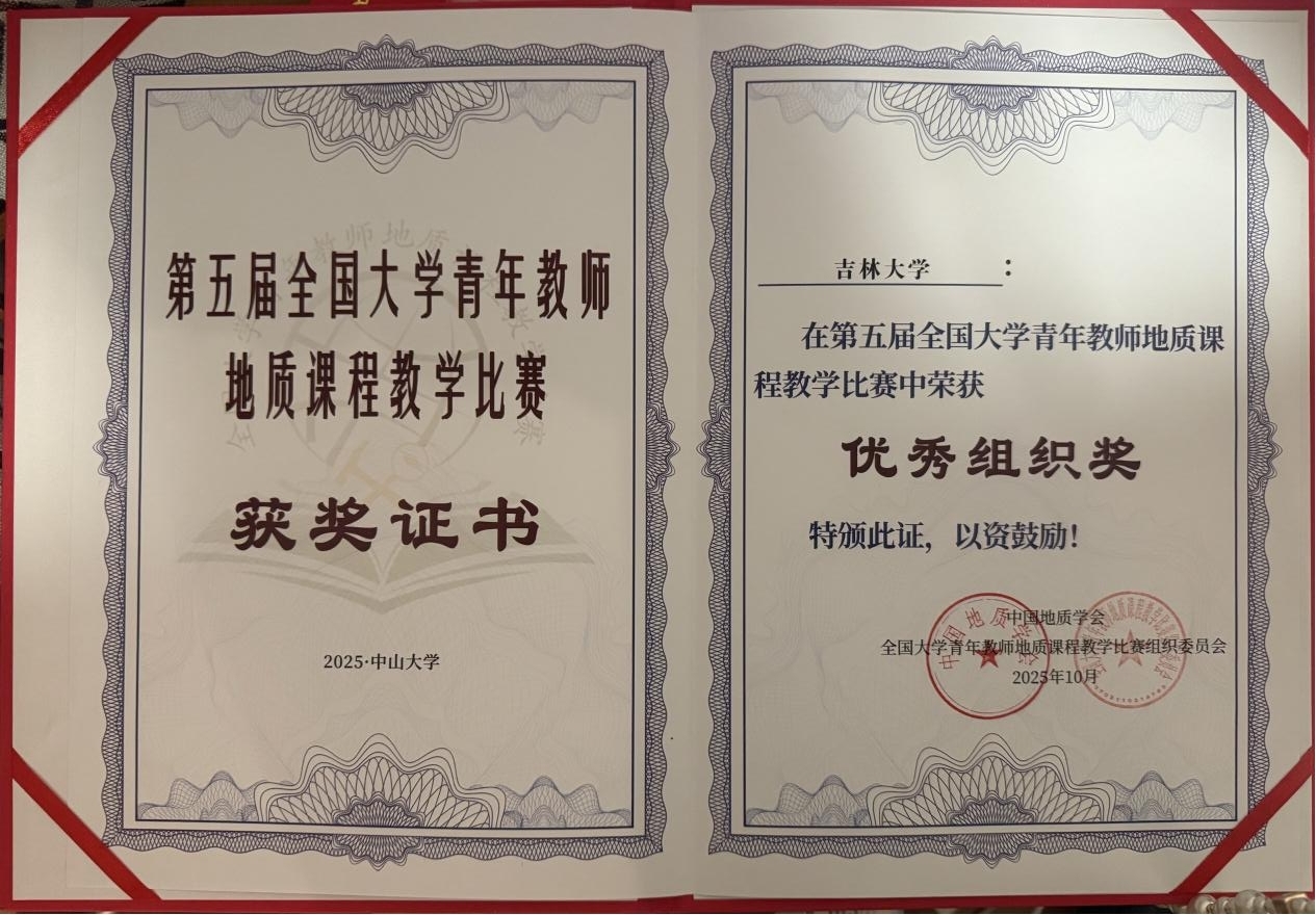 教学委员会主任彭晓蕾教授率领,参赛教师包括唐杰教授、董玉副教授、杨群副教授,单玄龙院长受邀以评委专家身份出席了会议。三位参赛教师凭借扎实的教学功底、创新的教学设计及出色的临场表现,从众多参赛选手中脱颖而出,分获特等奖、一等奖和二等奖。同时,为表彰六合彩即时开奖的优异表现,中国地质学会和全国大学青年教师地质课程教学比赛组织委员会联合授予吉林大学“优秀组织奖”。