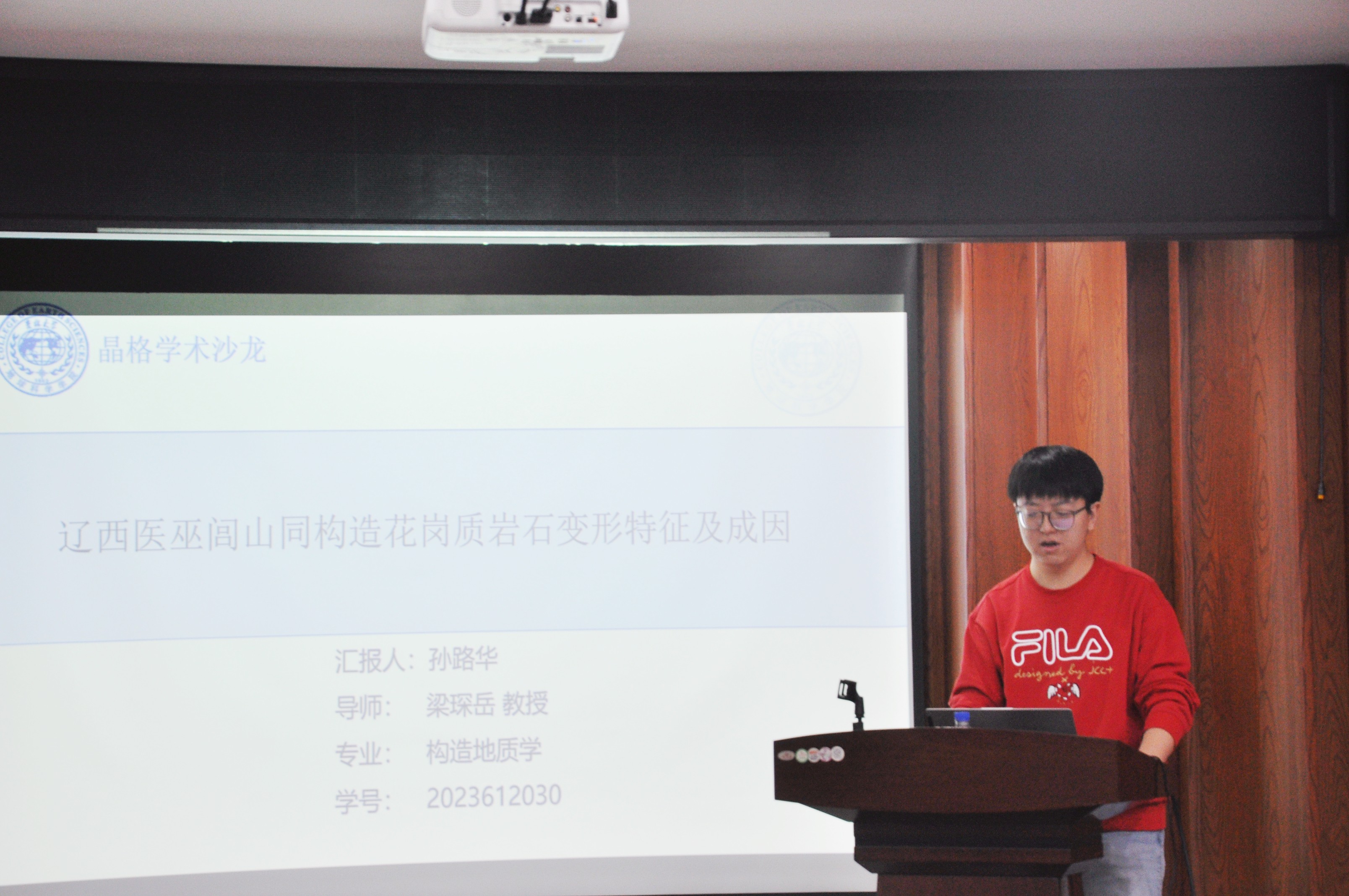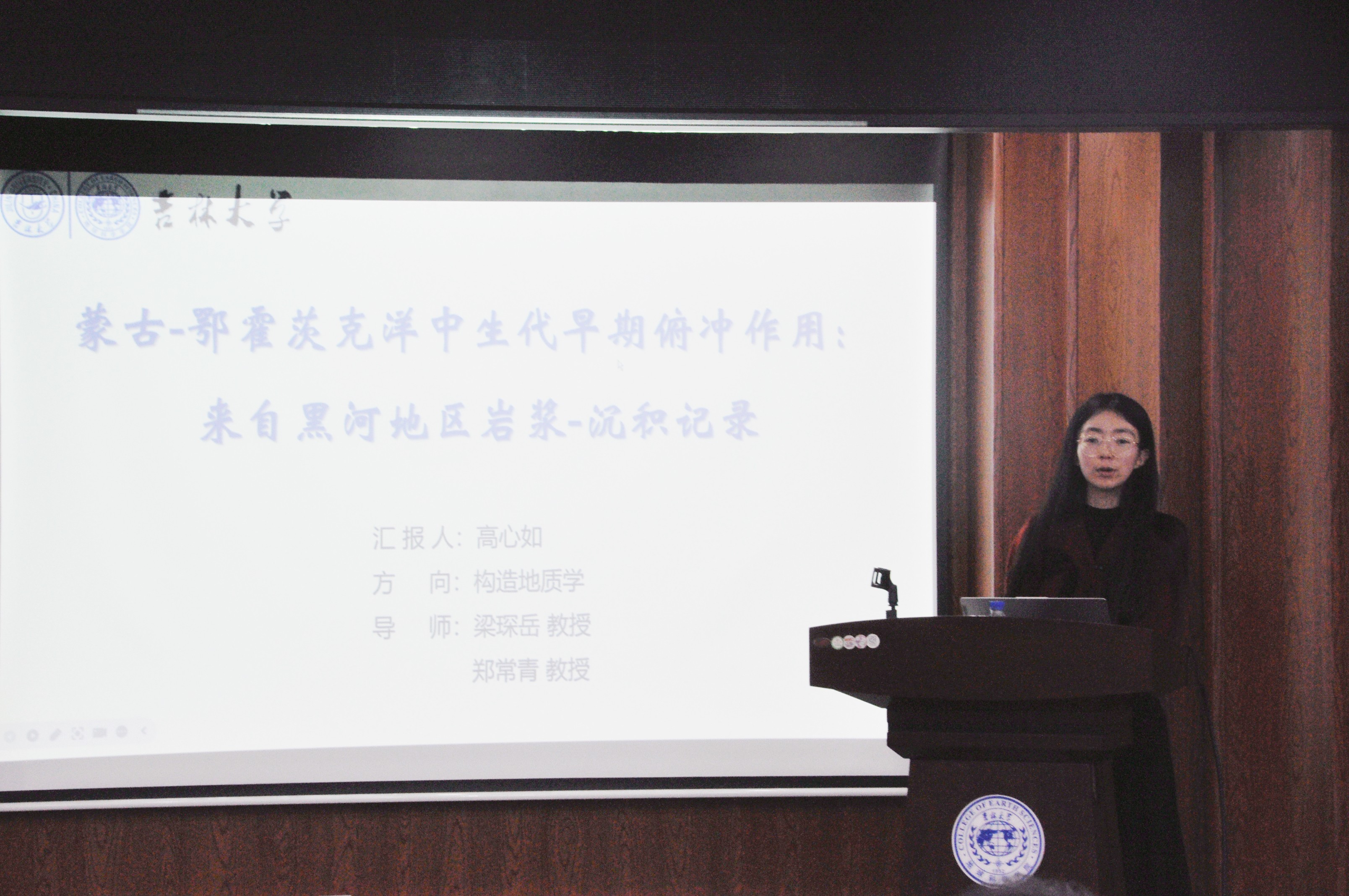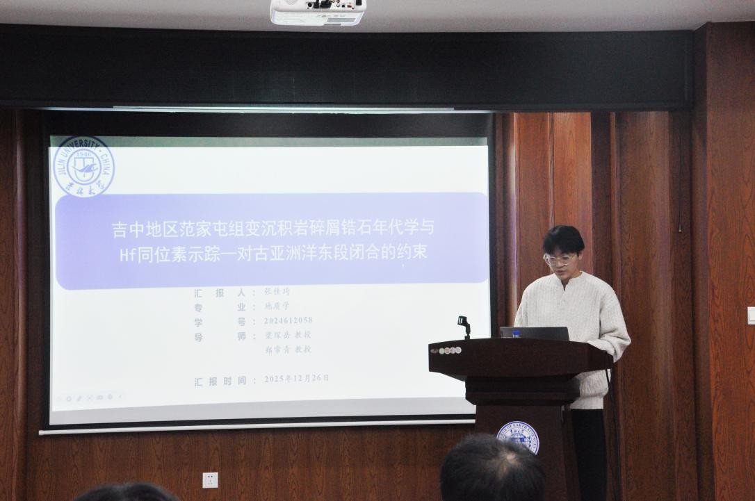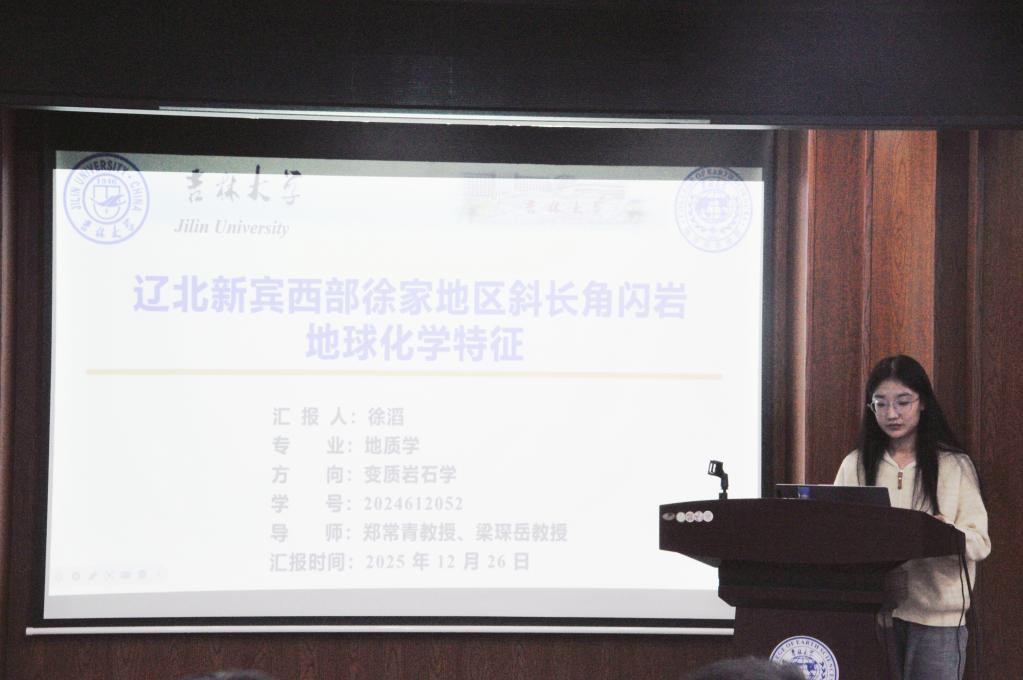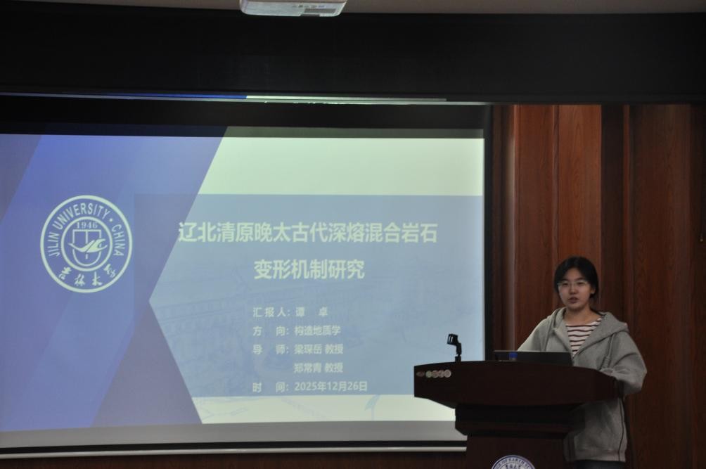 活动上,谭卓同学聚焦辽北清原晚太古代深熔混合岩变形机制展开研究阐述;孙路华同学深入分析辽西医巫闾山同构造花岗质岩石变形特征及成因;张佳琦同学通过吉中地区范家屯组变沉积岩碎屑锆石年代学与Hf同位素示踪,为古亚洲洋东段闭合提供约束依据;徐滔同学详解辽北新宾西部徐家地区斜长角闪岩地球化学特征;高心如同学结合岩浆-沉积记录,探讨蒙古-鄂霍茨克洋中生代早期俯冲作用;刘建宁同学研究鞍山—本溪地区~2.1Ga变基性侵入岩的岩石成因及其构造意义;黄宇奇同学基于松辽盆地上白垩统嫩江组化石,开展无尾两栖类演化研究;吴澈同学围绕辽东桃源金矿矿床地质特征及成因展开系统汇报。