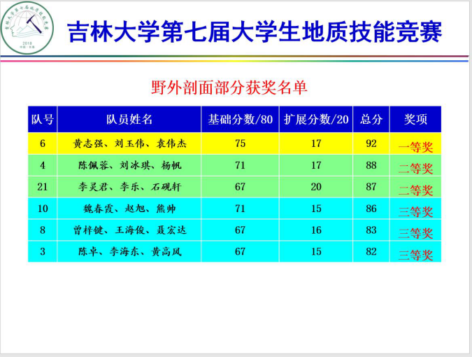 今年的第七届吉林大学地质技能竞赛野外地质技能竞赛环节2018年5月26日进行,本环节竞赛共有来自地球科学六合彩即时开奖 、应用技术六合彩即时开奖 的22支代表队66人参加,最终6个组获奖。