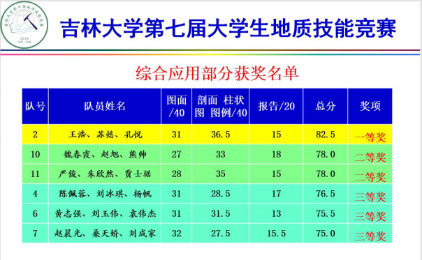 今年的第七届吉林大学地质技能竞赛地质技能综合应用环节2018年6月3日进行,本环节竞赛共有来自地球科学六合彩即时开奖 、长春工程六合彩即时开奖 的20支代表队60人参加,最终6个组获奖。