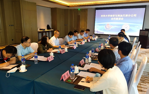 院长单玄龙教授主持。吉林大学郑伟涛副校长和中海石油天津分公司薛永安总地质师分别代表吉林大学和中海石油天津分公司进行了致辞。吉林大学郑伟涛副校长详细介绍了吉林大学和吉林大学地学部的基本情况、特点与优势,指出吉林大学地学部要集中学科和人才优势针对中海油天津分公司渤海油田勘探开发的需求进行联合攻关,为国家能源安全服务。中海石油天津分公司专家详细介绍了中海石油天津分公司的基本情况,油气勘探开发成就和在海洋油气勘探开发领域的实际需求,并介绍了海油天津分公司海域探区地质构造等相关情况;吉林大学林君院士就推进吉林大学地学部与中海油天津分公司校企战略合作提出了建设性意见,并就双方合作前景进行了展望。之后,与会人员就进一步推动双方科研合作、联合攻关和人才培养等方面进行了深入的交流和讨论。