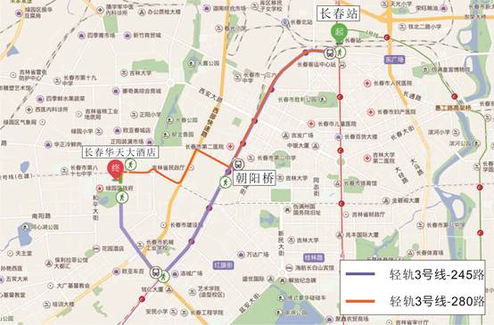 图5长春站(长春北站)与华天酒店交通位置图