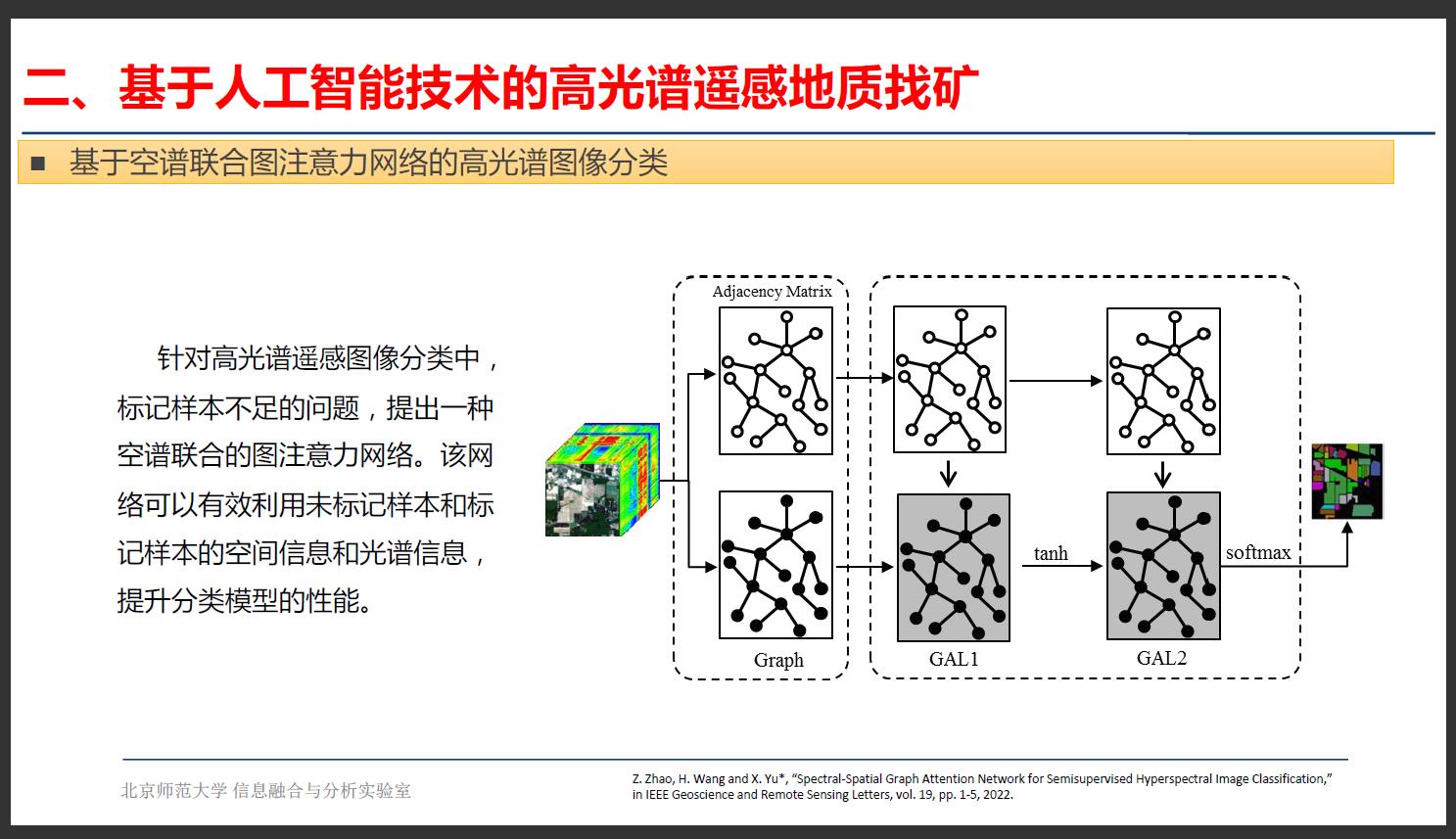 余先川老师首先介绍了其所在的北京师范大学空间信息处理与分析实验室的基本情况、研究方向及取得的主要成果,然后重点介绍了基于新一代人工智能技术的遥感地质找矿的基本思路、研究方法、未来方向等,最后余老师总结了大数据、人工智能、机器学习等在地学领域的应用现状及未来发展趋势。