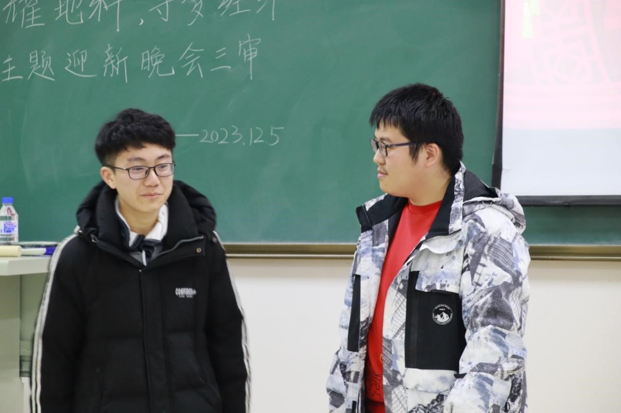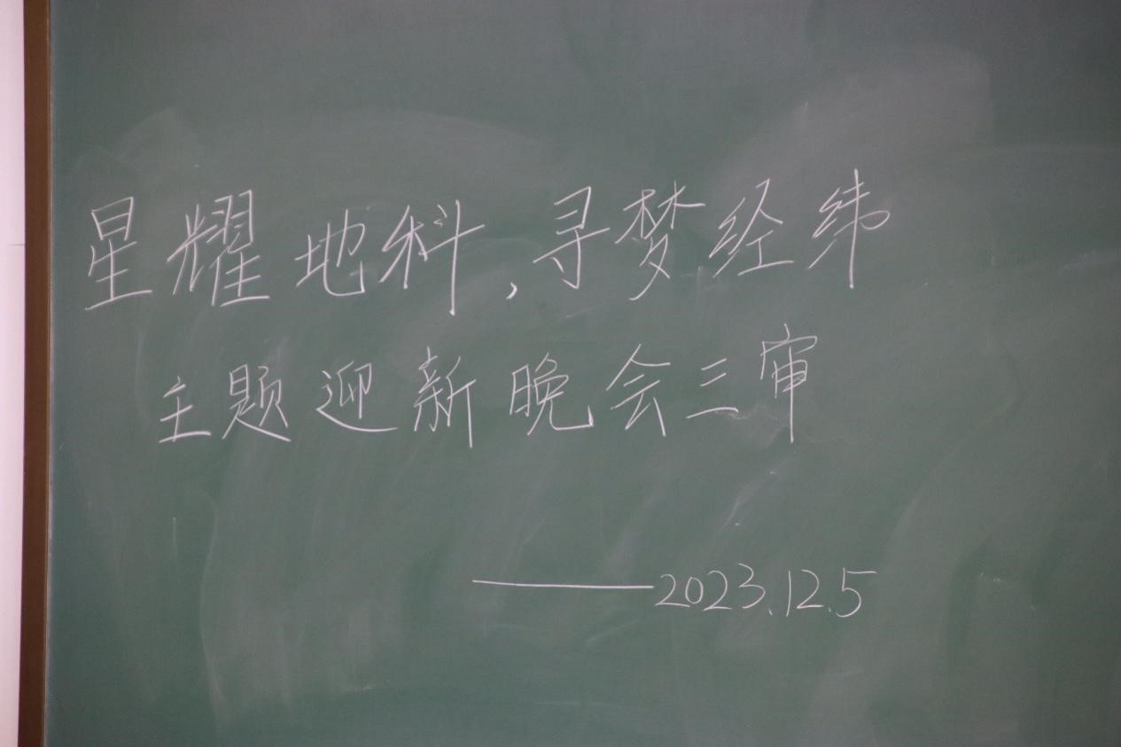 2023年“星耀地科,寻梦经纬”主题迎新晚会第三次预备节目审核于李四光楼207、209教室顺利举行。参与本次审核的有团委书记兼2021级辅导员韩旭老师、2023级兼职辅导员王锶淼老师,以及晚会全体学生工作负责人。