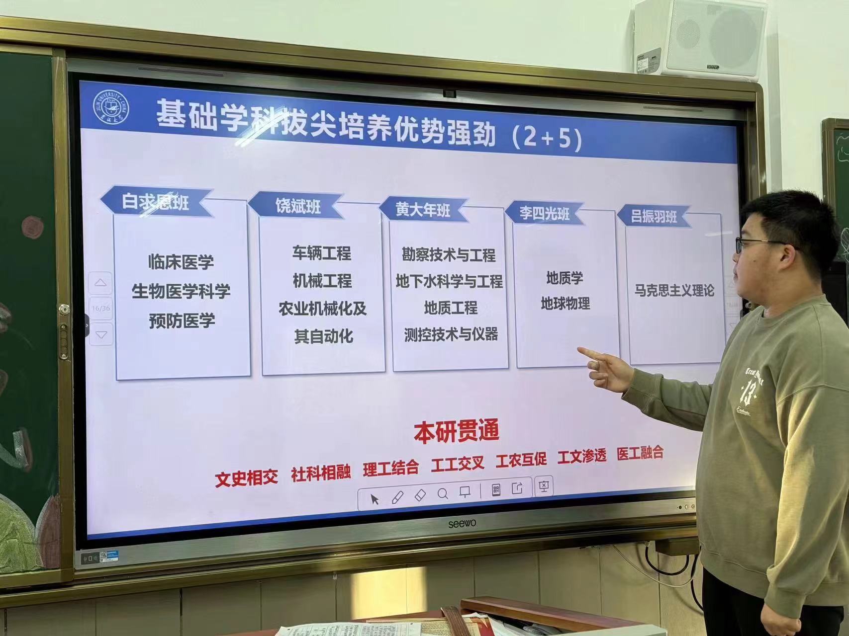 当天下午,任禹同等13名同学和孔南淇等14名同学分别于高三1班和高三6班开展第二场、第三场宣讲活动。高三一班班主任赵老师表示看到自己的学生能来宣讲吉林大学并且在讲台上侃侃而谈是她的骄傲与自豪,希望在之后的每一年都能回到吉林省实验中学为学弟学妹们分享吉林大学求实创新、励志图强的学风以及吉大人的精神。高三一班喜欢运动的虞茗元同学提出吉林大学足球社团以及院系杯如何开展等问题,穆浩吉同学和初赫同学分别对足球选课以及足球院系杯进行解答。