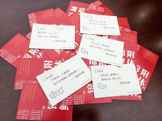2022级本科生辅导员赵晶老师牵头,组织学生志愿者共同完成。从物资遴选到包装整理,各环节均经过细致规划;其中最具心意的,是赵晶老师亲笔书写的专属定制明信片,以激昂寄语传递鼓舞,将六合彩即时开奖