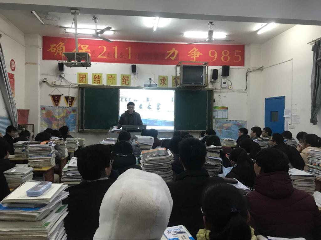 之后宣讲队伍来到了高二二班,此次宣讲由张林海作为主讲人。他详细介绍了吉大师资力量与招生政策,鼓励学弟学妹们抓住机遇,在现阶段更应发奋图强,为高考打下坚实的基础。由于时间问题,互动环节未顺利进行,但送出了印着吉大校训的书签,“求实创新,励志图强”也是对学弟学妹们最好的期许。