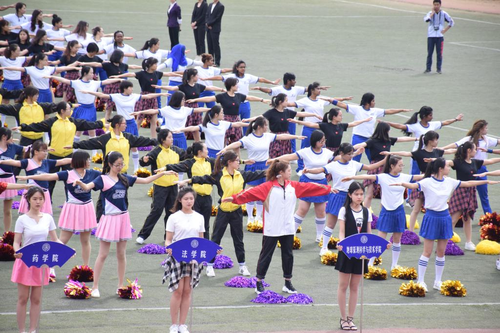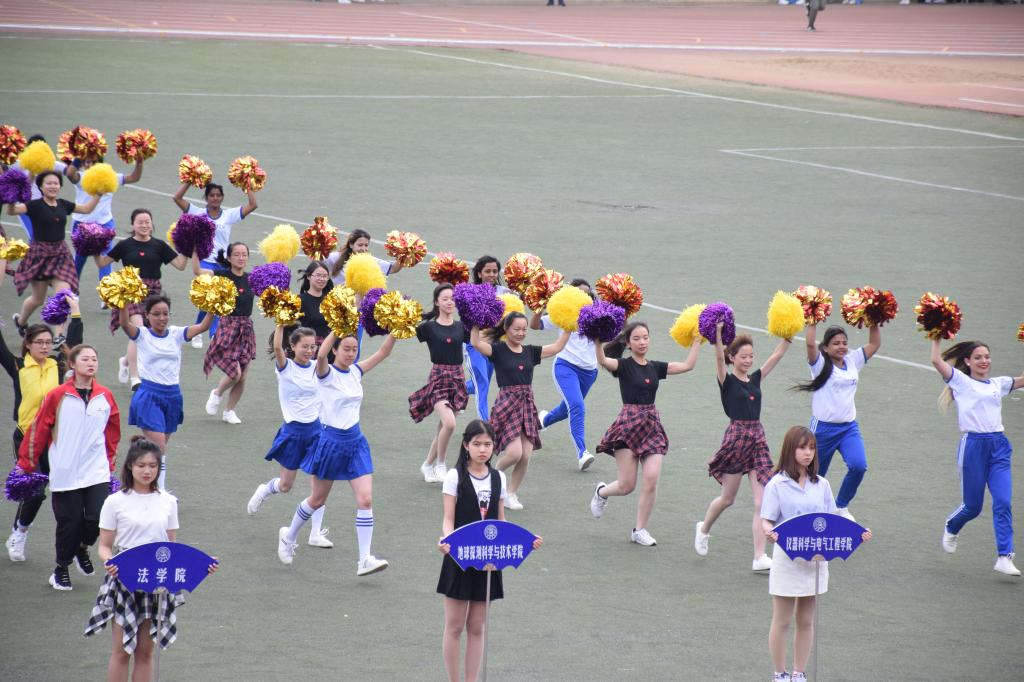 庞大的广播体操啦啦操表演队伍,地科的队伍与大部队一起, 为场上的运动健儿们加油助威。