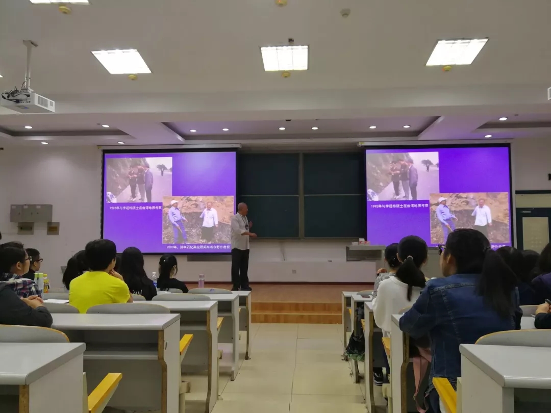 最后马先生告诉大家,格物致知,求学问知固然重要,但更重要的是人的品质。钱伟长先生学习研究多个专业,只为国家更好地发展。许许多多老一辈的学者,他们热爱祖国,怀揣的是用知识奉献的理想,他们知识渊博,却又时刻谦虚谨慎;他们获得众多荣誉,却朴实可亲;他们走出走远走高,却不忘初心。他们面对诱惑不动心,肯吃苦,能坚持,敢奋斗,才有了如今的坚实基础,才传承了正风正德正气的地学精神。