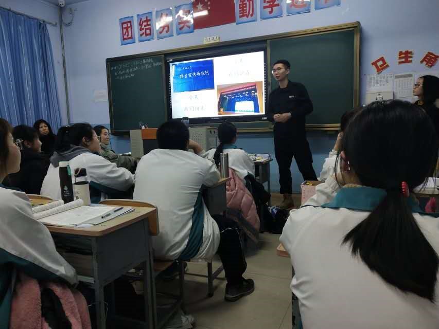 在招生宣传前期,团队不仅认真交流、熟悉吉大官方招生宣传PPT,各位队员还根据各自对大学生活的感悟进行串联、总结,制作出一版独具吉林大学特色的大学生活宣传课件。在团队精心的筹备下,在与大安一中的积极沟通下,团队招生宣传活动在母校高三课堂上顺利开展。