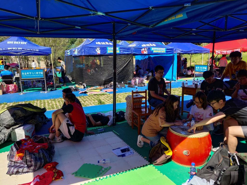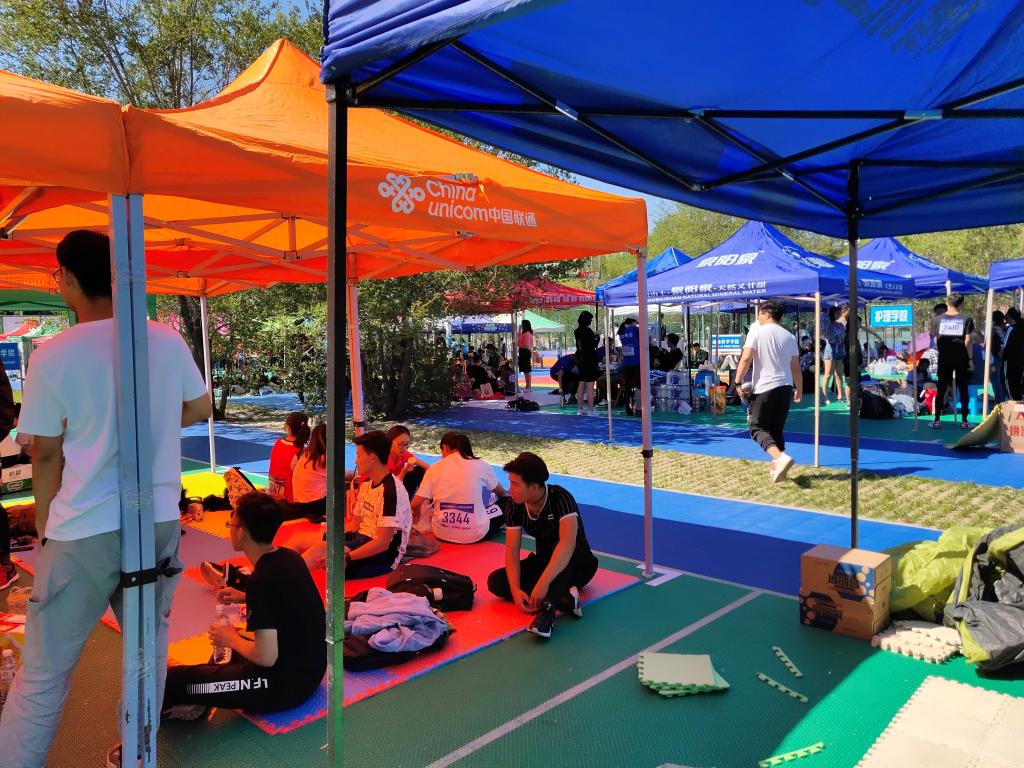 在操场的搭建的棚子里,他们有的安排场地,有的整理服装,有的热身运动。原本安详静谧的篮球场一瞬间就变得热闹非凡。
