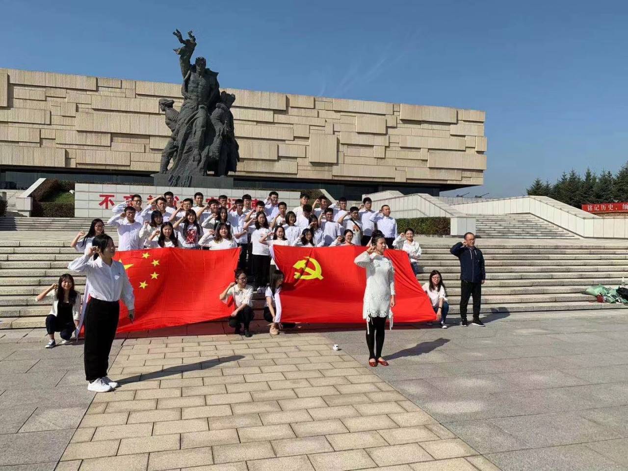 19级辅导员杨凯凯老师讲话,杨老师讲到:“红旗是用无数革命先烈的鲜血染红的,共和国的大厦是用先辈们的生命奠基的,在我们今天参观烈士陵园和烈士纪念馆后将有切身体会。”听到杨老师的讲话我们感触颇多,作为新时代的大学生,我们一定要常怀报国之志,常思肩上之责,常怀感恩之心。不忘初心,做先锋模范。