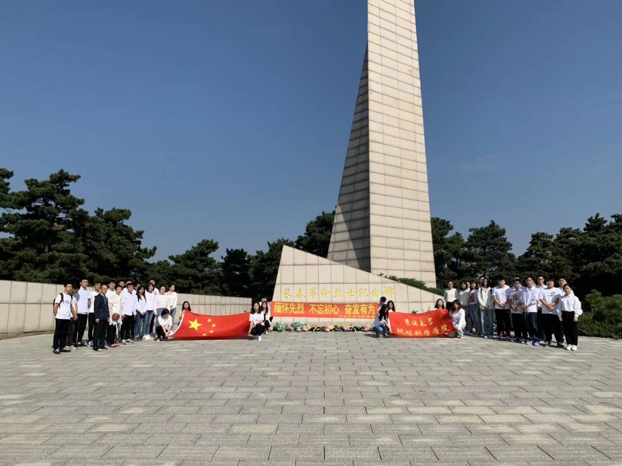 学生党员代表在革命烈士纪念碑前献花,全体党员沉痛悼念鞠躬。同学们定会谨记烈士的遗愿,踏着烈士的足迹,用实际行动呼唤文明进步的春风,告慰烈士忠魂。