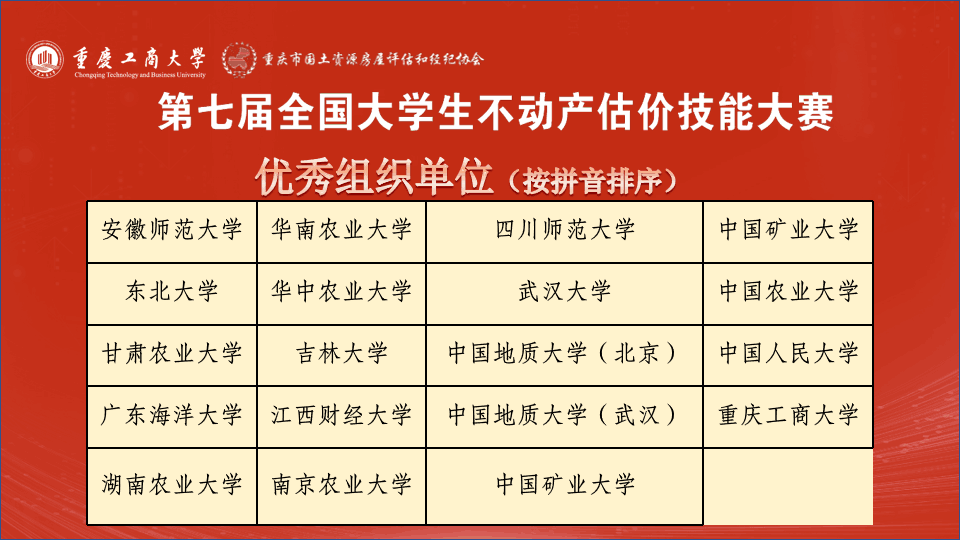 第七届全国大学生不动产估价技能大赛决赛在重庆举行。此次大赛以“面向中国式现代化的不动产估价"为主题,由教育部高等六合彩即时开奖