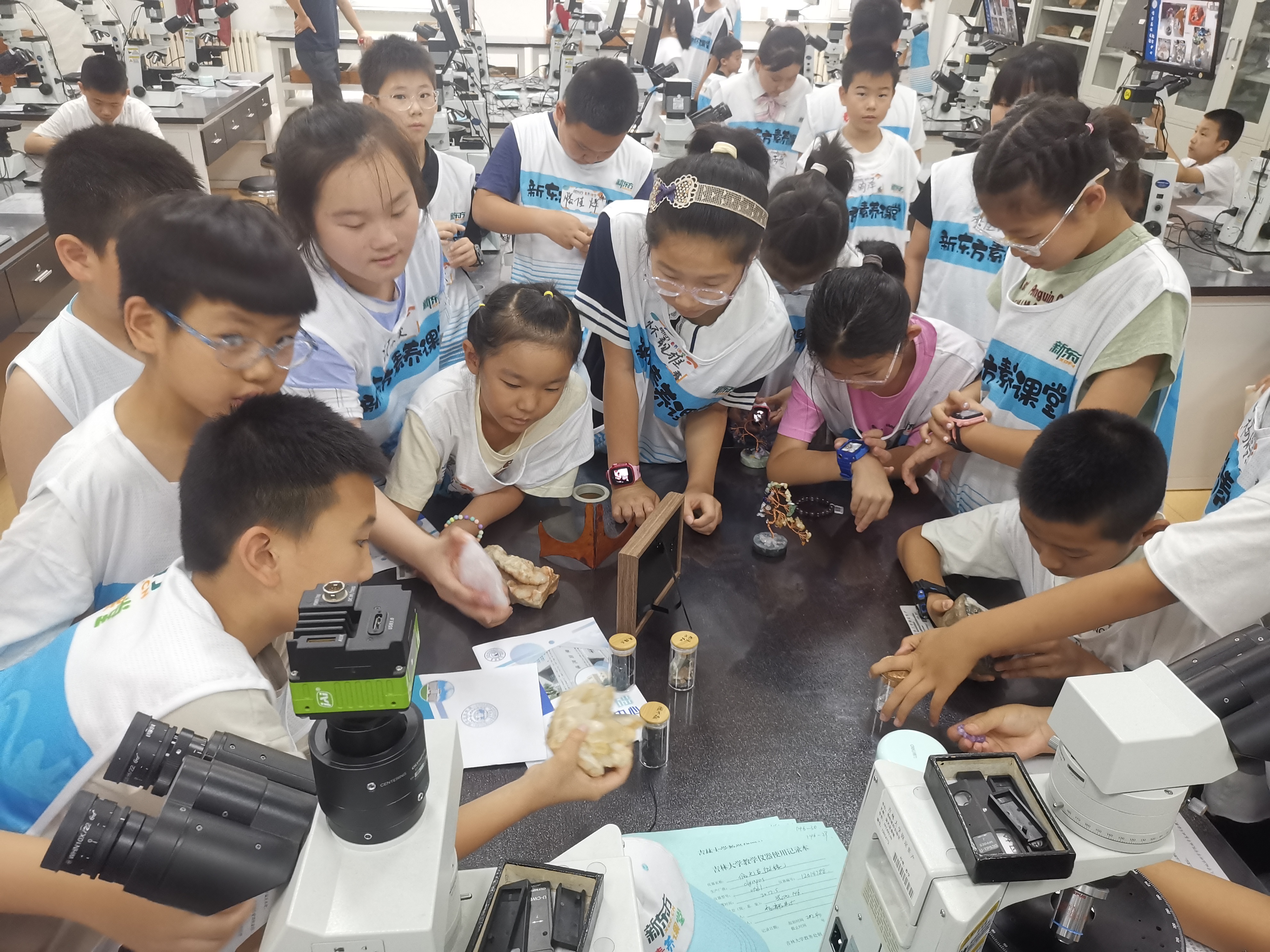 自7月13日至28日,我地学基础实验教学中心承接由吉林大学培训六合彩即时开奖 策划的面向中小学生的“新东方素养课堂”暑期科技实践教育系列活动。本次活动利用周末时间,为期5天,接待小学生1000余人。本次活动利用岩石学实验室、古生物与地层学实验室,开展走进地学实验室——地质学是什么;石英与生活——地球的物质组成;真真假假的化石——地球的演化三部分内容,通过知识讲解、实物演示、标本观察等多样化的学习体验,拓宽中小学生的知识视野,激发他们探索地球奥秘的学习兴趣。