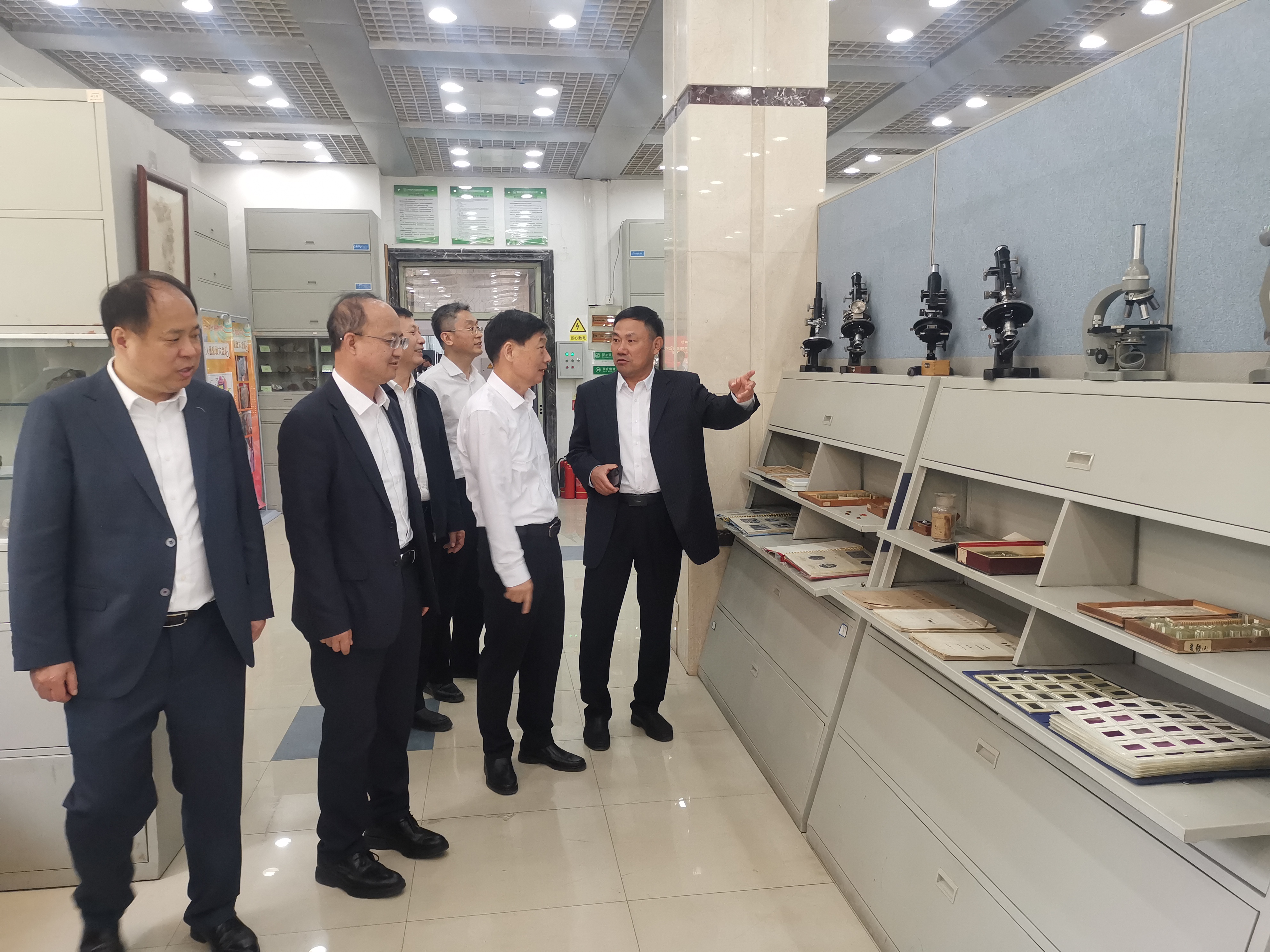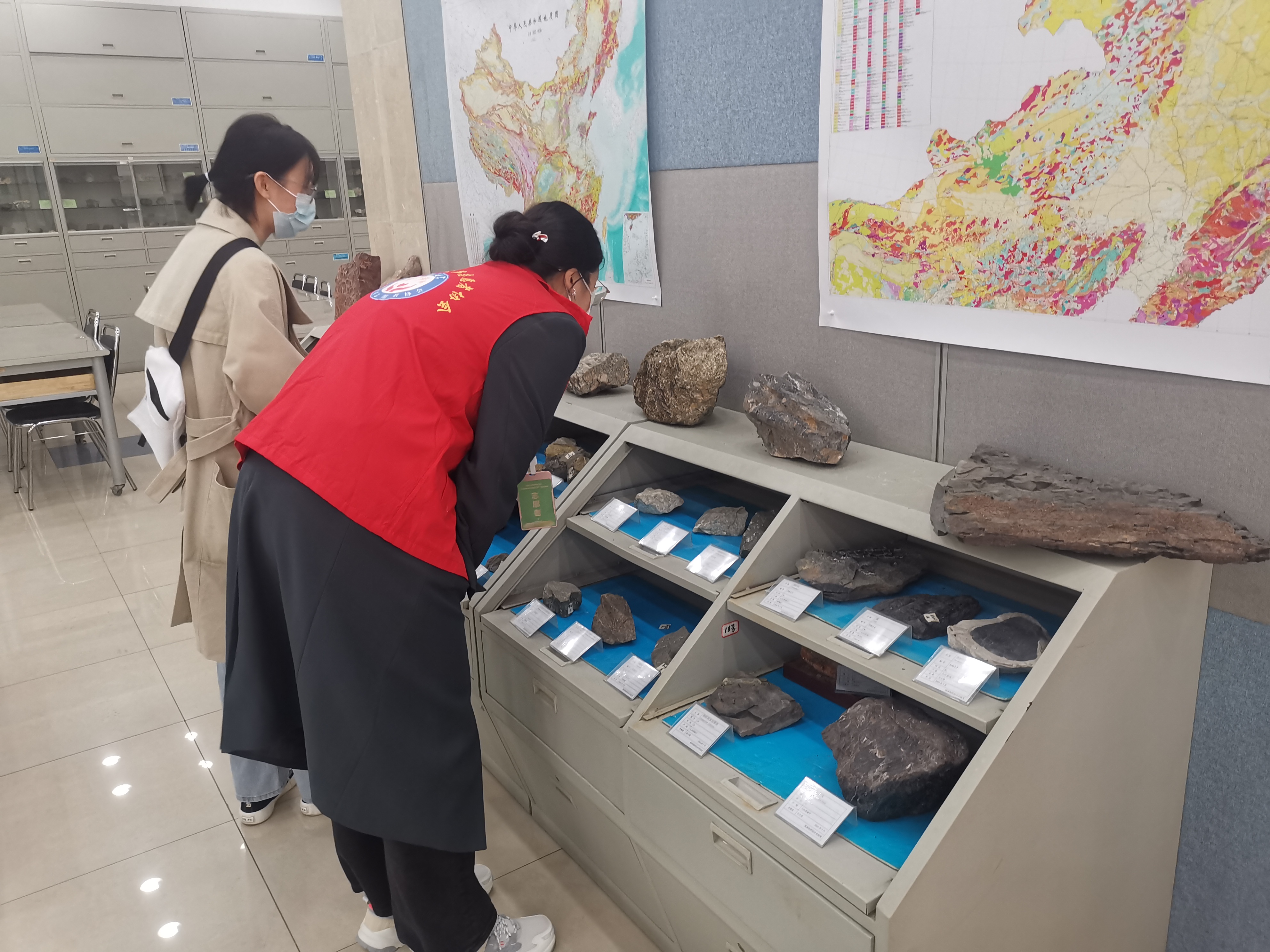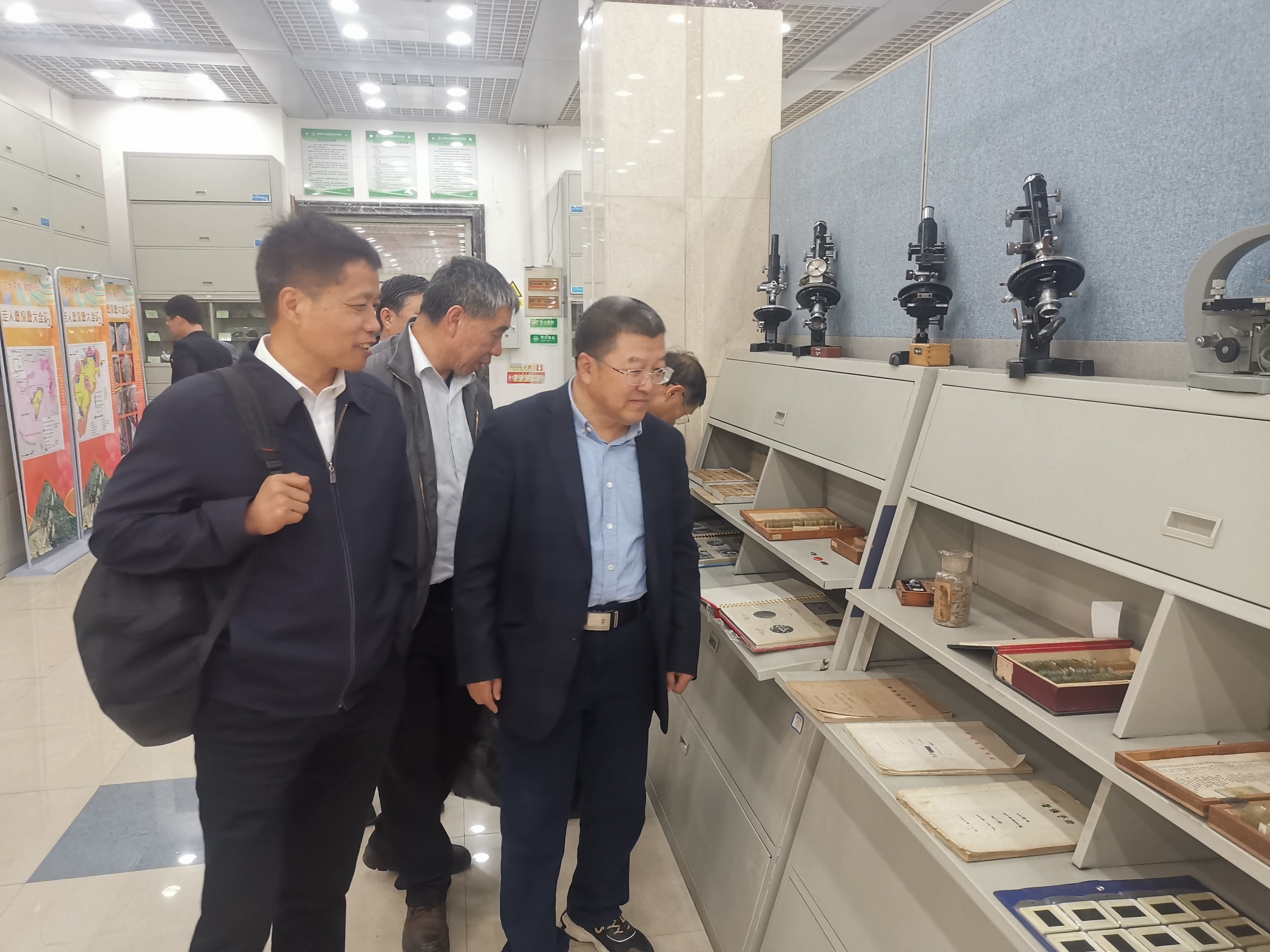 自4月初,中心接到校庆活动参观任务,确认参观路线,拟定校庆“回顾与展望”临展主题,完成教学中心宣传手册设计制作,完成家具翻修及展板更新,设计完成101地球综合实验室教学显微镜教案等院史实物临展、校友捐赠标本集中展示、矿物颜料磨制等双创成果展;201地球演化综合实验室古生物化石标本三维数字成果展、兴城实习虚拟仿真路线展示、无人机实景三维建模等开放性创新实验展示等。丰富的实物资料、多元的实践教学成果给校友留下深刻印象。