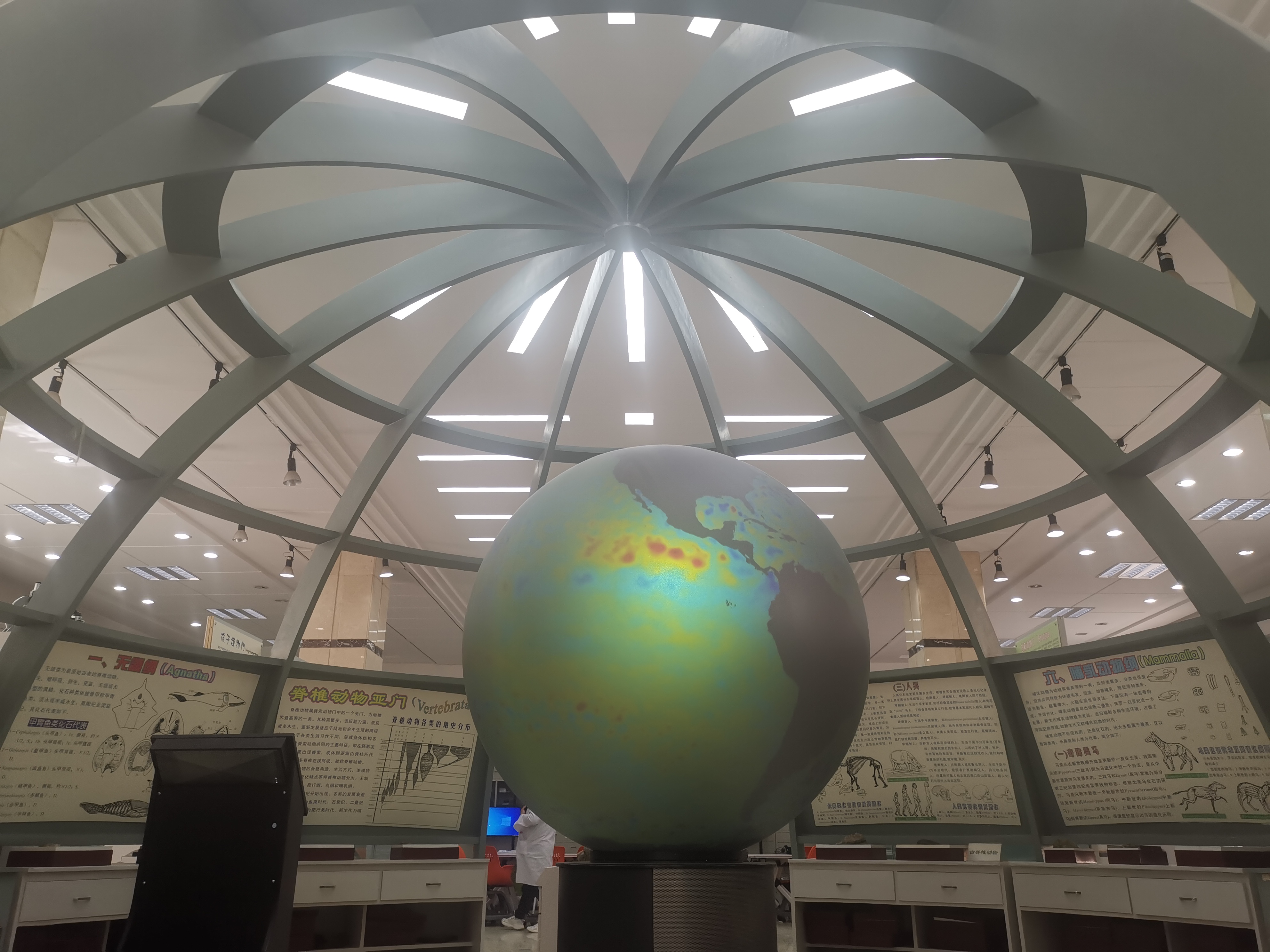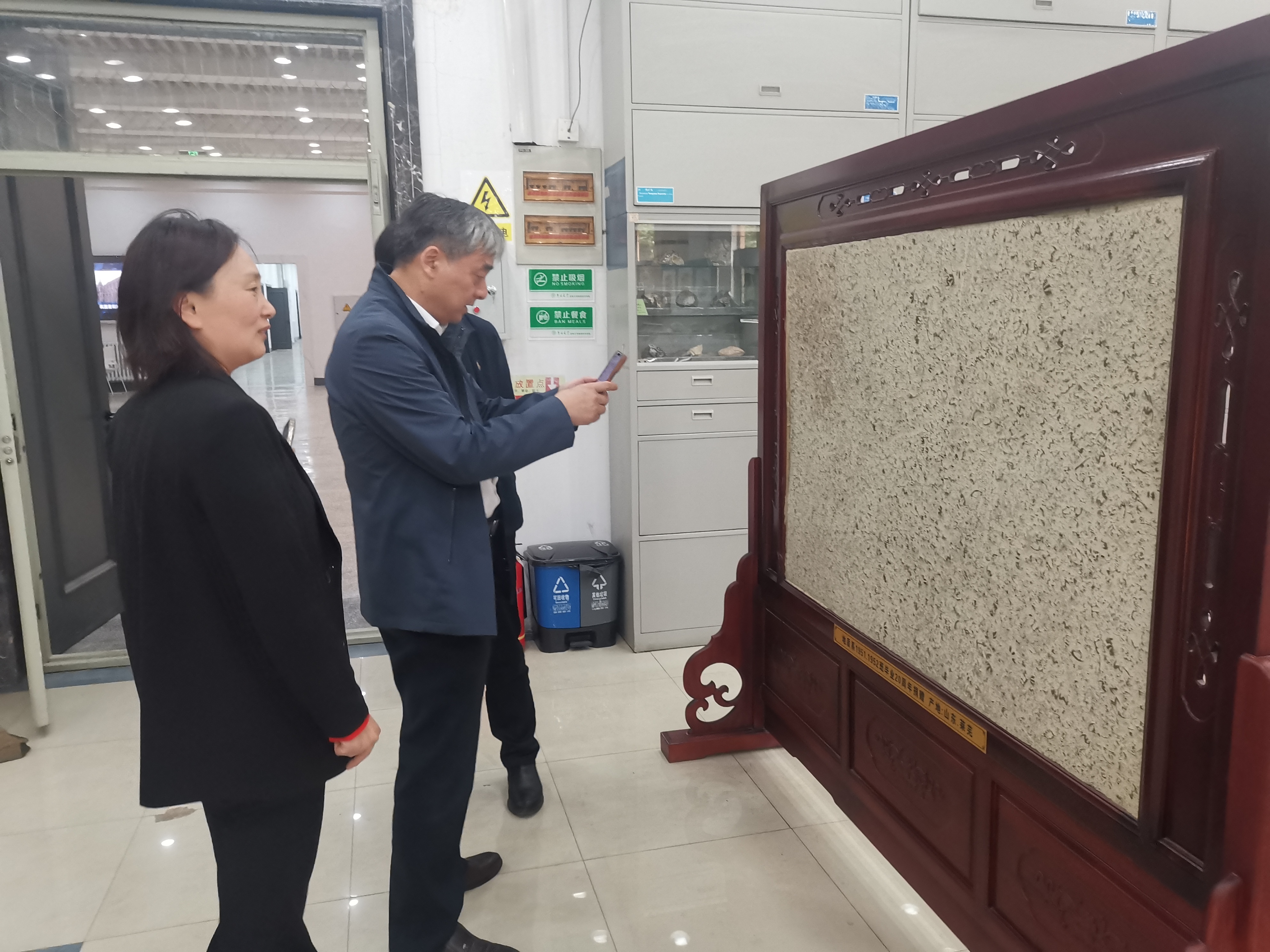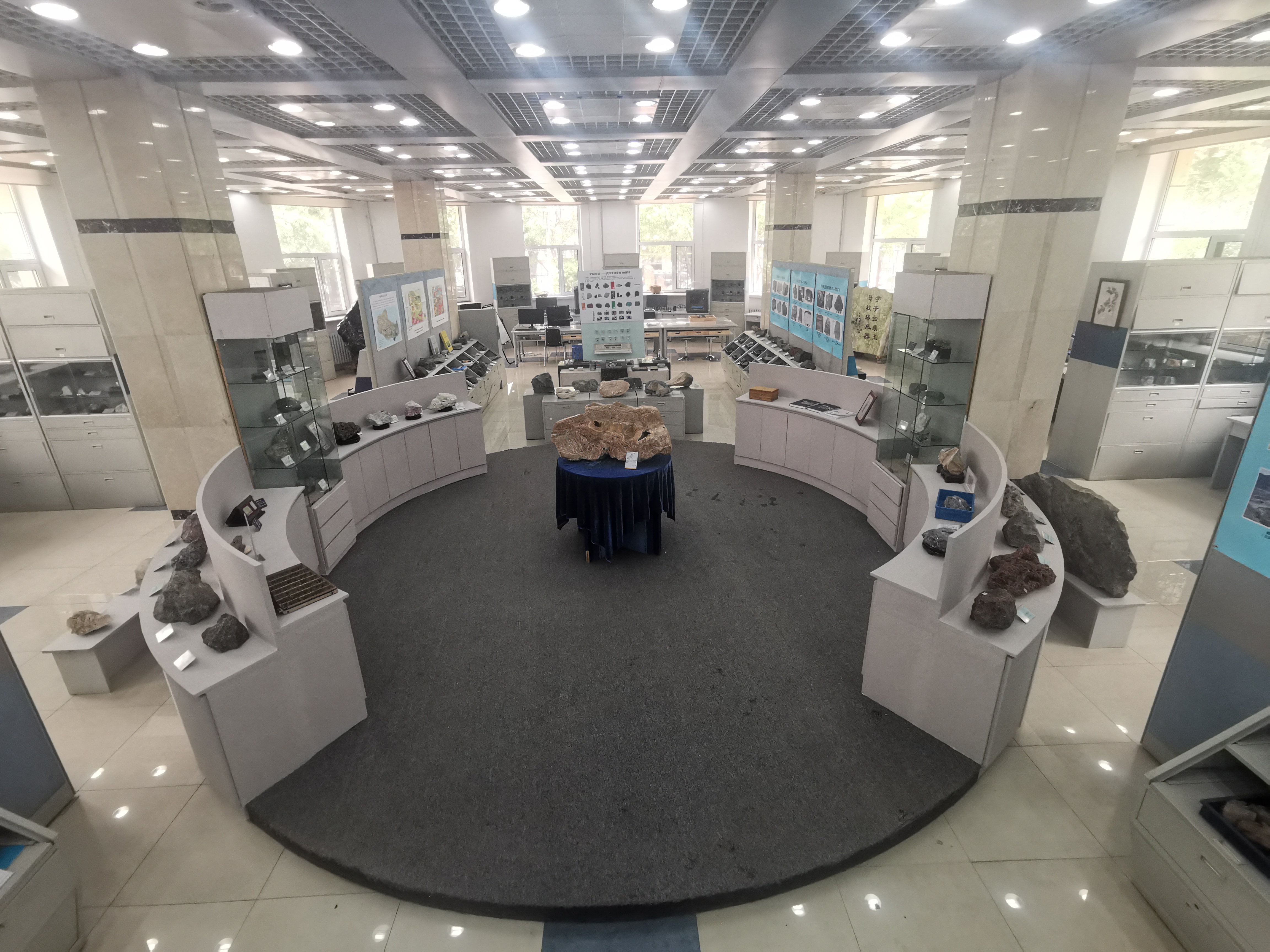 自4月初,中心接到校庆活动参观任务,确认参观路线,拟定校庆“回顾与展望”临展主题,完成教学中心宣传手册设计制作,完成家具翻修及展板更新,设计完成101地球综合实验室教学显微镜教案等院史实物临展、校友捐赠标本集中展示、矿物颜料磨制等双创成果展;201地球演化综合实验室古生物化石标本三维数字成果展、兴城实习虚拟仿真路线展示、无人机实景三维建模等开放性创新实验展示等。丰富的实物资料、多元的实践教学成果给校友留下深刻印象。