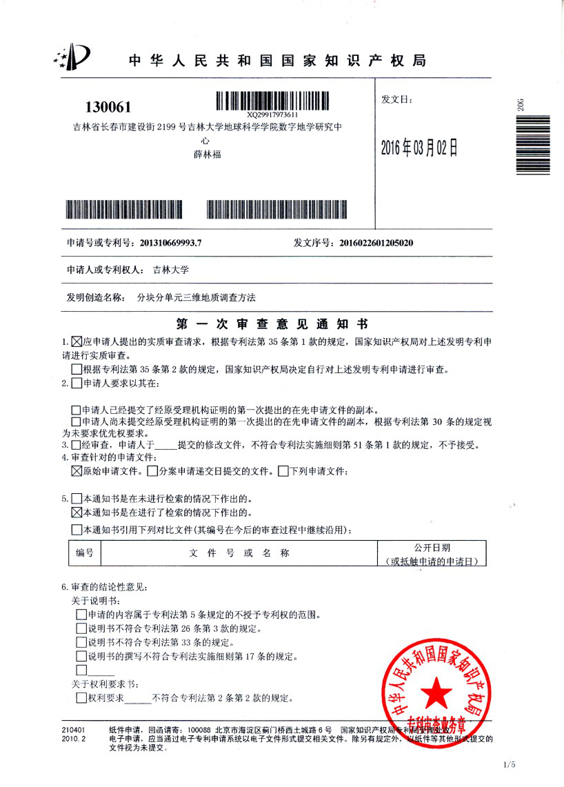 分区块分单元三维地质调查方法 薛林福等 国家专利局 201310669993.7