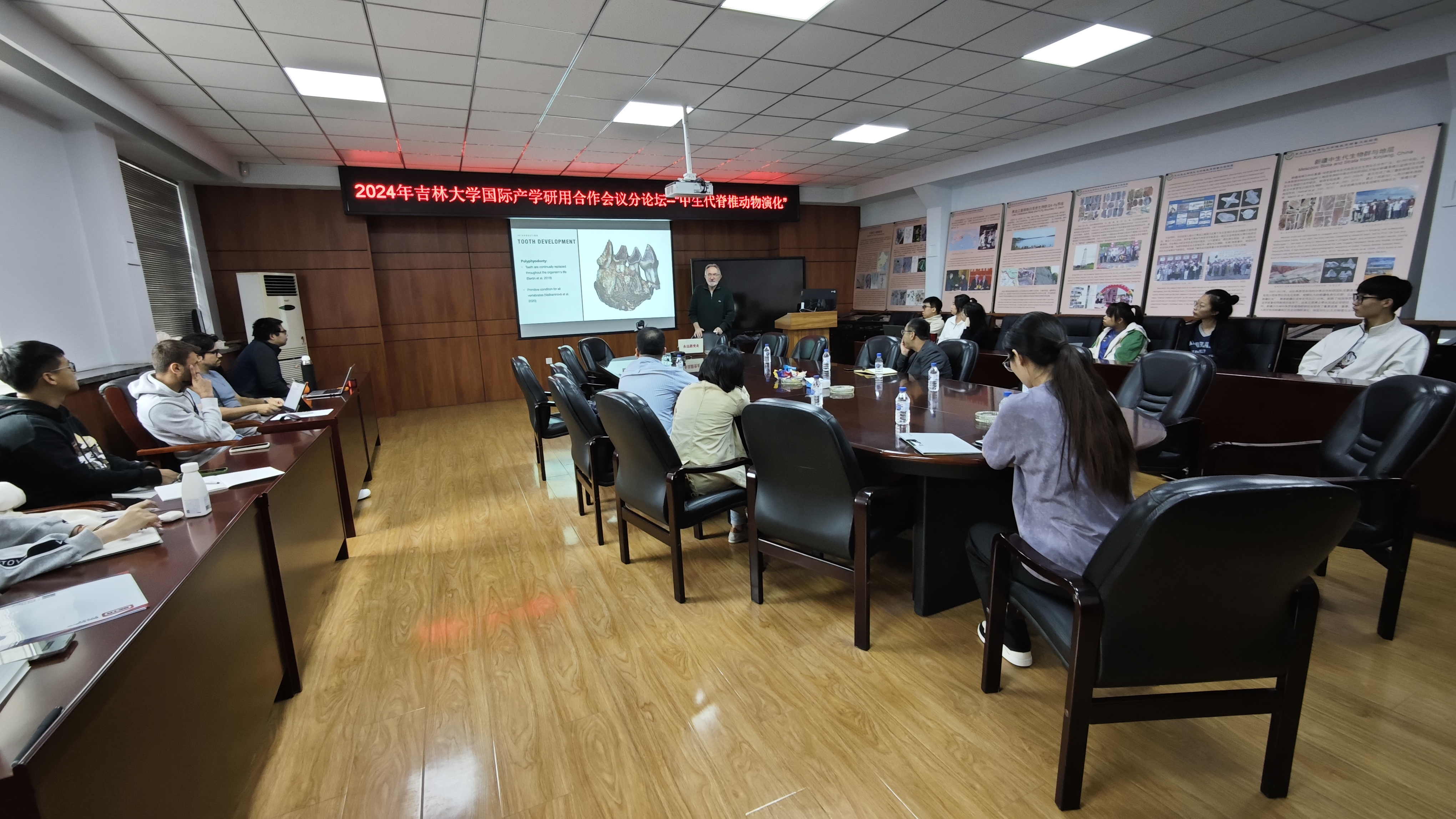 、恐龙演化研究中心、古生物学与地层学研究中心和地质博物馆联合举办了“中生代脊椎动物演化”学术工作坊,会议地点为吉林大学朝阳校区古生物楼三楼会议室。